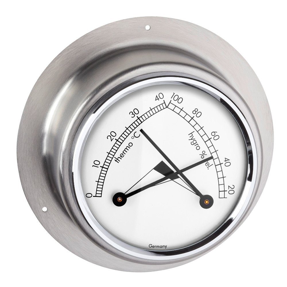 Das Maritim Thermo-Hygrometer aus Edelstahl in klassisch maritimem Design passt zu den Wetterinstrumenten aus der gleichen Serie.