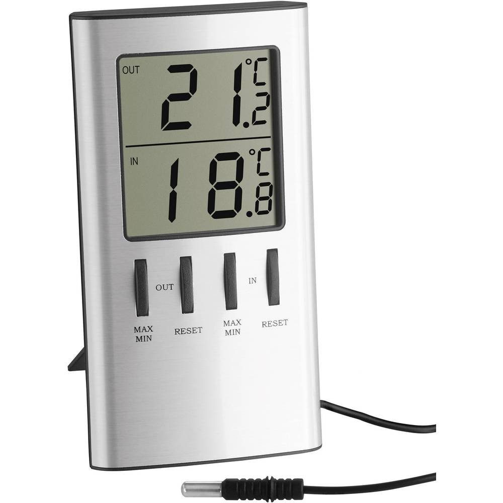 Ausstattung | Abmessungen (Basisstation): 22 x 64 x 120 mm · Funktionen (Wetterstationen): Außentemperatur, Innentemperatur · Gehäusefarbe (Details): Silber (metallic) · Gewicht (Station): 79 g · Messbereich Außentemperatur: -50 bis 70 °C · Messbereich Innentemperatur: -10 bis 50 °C · Spannungsversorgung Station: Mignon-Batterie (1x), inkl. · Übertragungssignal (Wetterstationen): kabelgebunden |