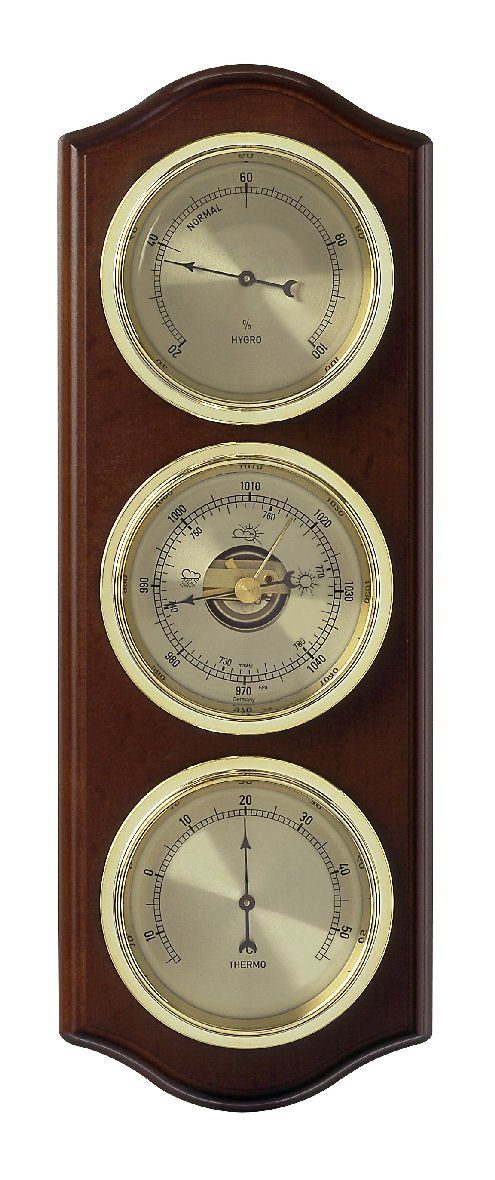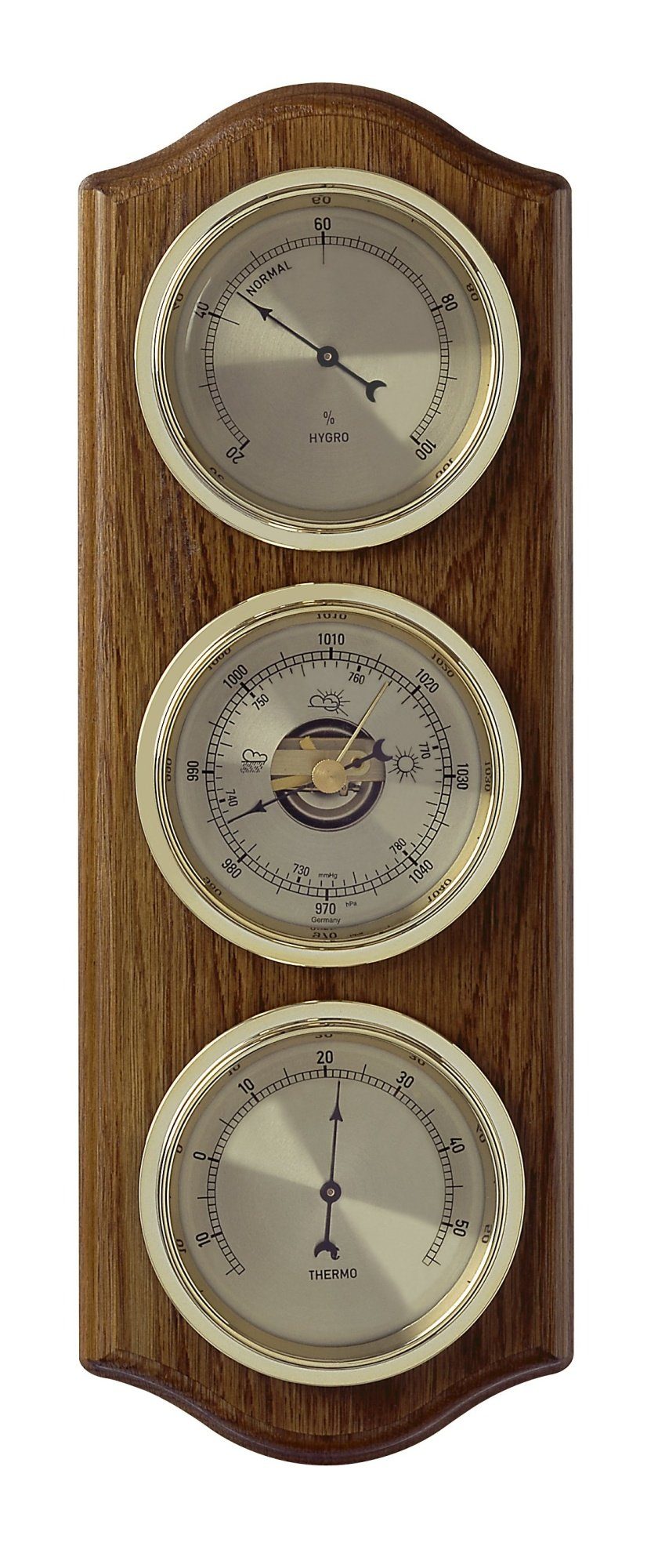 Die klassische Wetterstation wartet mit einem besonderen Highlight auf. Das sichtbare Werk erlaubt einen Blick auf die hochwertige Mechanik des Dosenbarometers. Die Messung des Luftdrucks macht eine lokale Wettervorhersage möglich. Steigt der Luftdruck, bessert sich das Wetter. Bei sinkendem Luftdruck müssen Sie mit schlechterem Wetter rechnen. Durch die Kontrolle von Innentemperatur und Luftfeuchtigkeit schaffen Sie sich ein behagliches und gesundes Raumklima und sparen Heizkosten. Die Station wird komplett in Deutschland gefertigt.