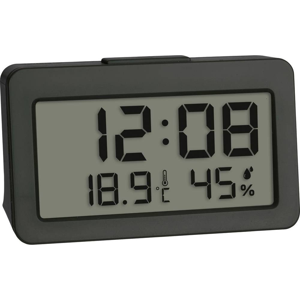 Mit diesem handlichen Wecker von TFA Dostmann haben sie die aktuelle Uhrzeit immer im Blick und werden pünktlich geweckt. Gleichzeitig behalten Sie dank integrierter Sensoren für Temperatur und Luftfeuchtigkeit das Klima in Ihrem Schlafzimmer im Blick: Für einen erholsamen Schlaf sollte die Temperatur zwischen 16 und 18 °C liegen. Laut Studien fühlen sich die meisten Menschen in Räumen mit 40 bis 60 % Luftfeuchtigkeit am wohlsten. Mit gezieltem Heizen und Lüften können Sie auf diesem Weg nicht nur für ein Wohlfühlklima sorgen und Heizkosten sparen, sondern Schimmelgefahr bei zu hoher Feuchtigkeit frühzeitig erkennen. Dank seiner handlichen Размер von 68 x 24 x 40 mm passt dieser Wecker garantiert auf jeden Nachttisch und leistet Ihnen mit gerade einmal 36 Gramm Gewicht auch auf Reisen gute Dienste. Betrieben wird der Wecker mit einer 3V CR2032 Knopfzelle (im Lieferumfang enthalten)..