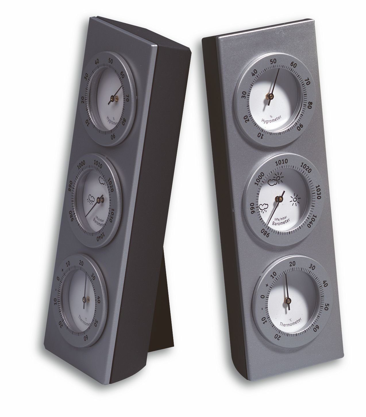 Viel Information in kompaktem Gehäuse. Die Mini-Wetterstation im Metallic- Kunststoffgehäuse passt garantiert auf jeden Schreibtisch und in jedes Regal. Von dort versorgt Sie den Betrachter mit den aktuellen Daten zu Temperatur, Luftdruck (Wettervorhersage) und Luftfeuchtigkeit. Die Station wird komplett in Deutschland gefertigt.