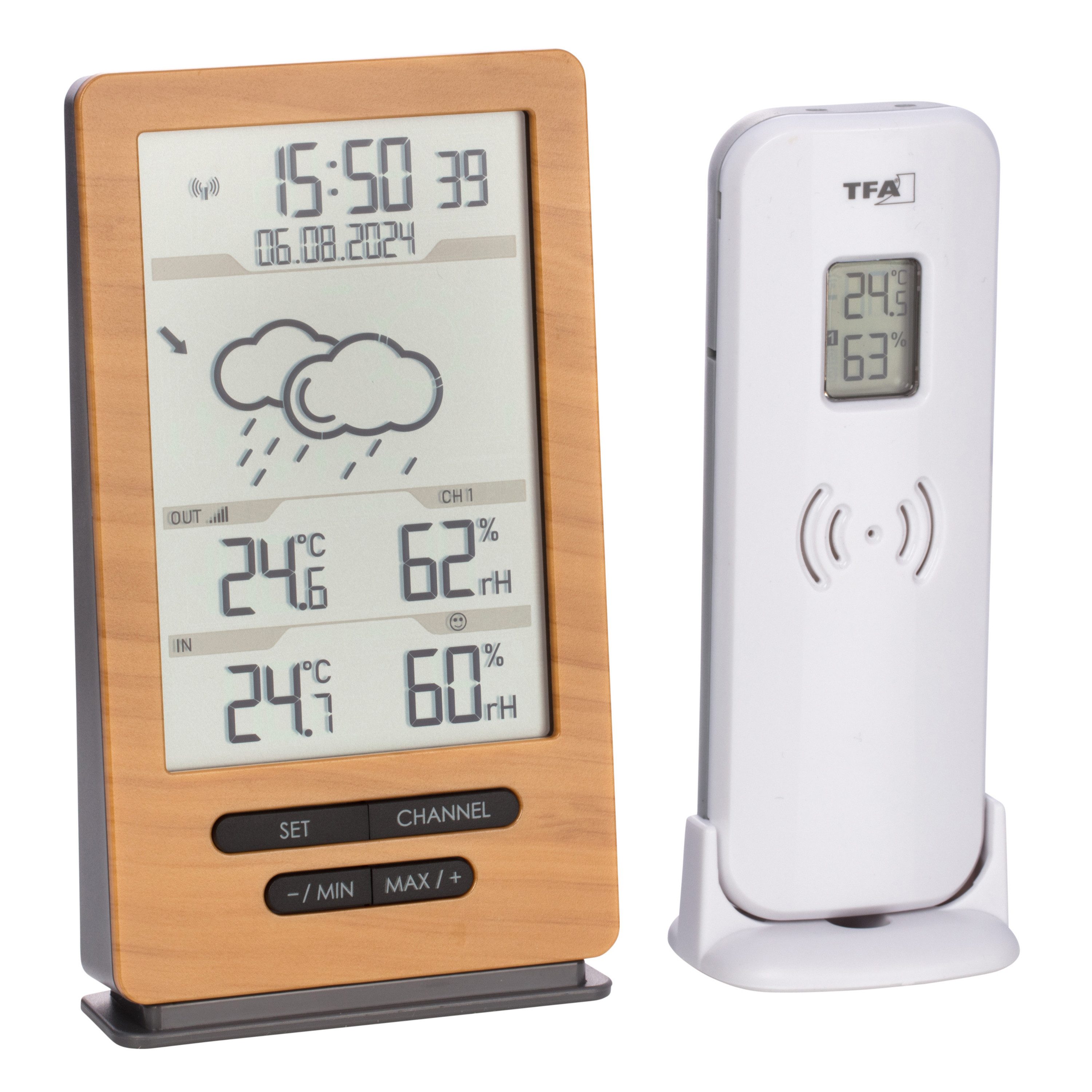 Außentemperatur und Luftfeuchtigkeit über kabellosen Außensender