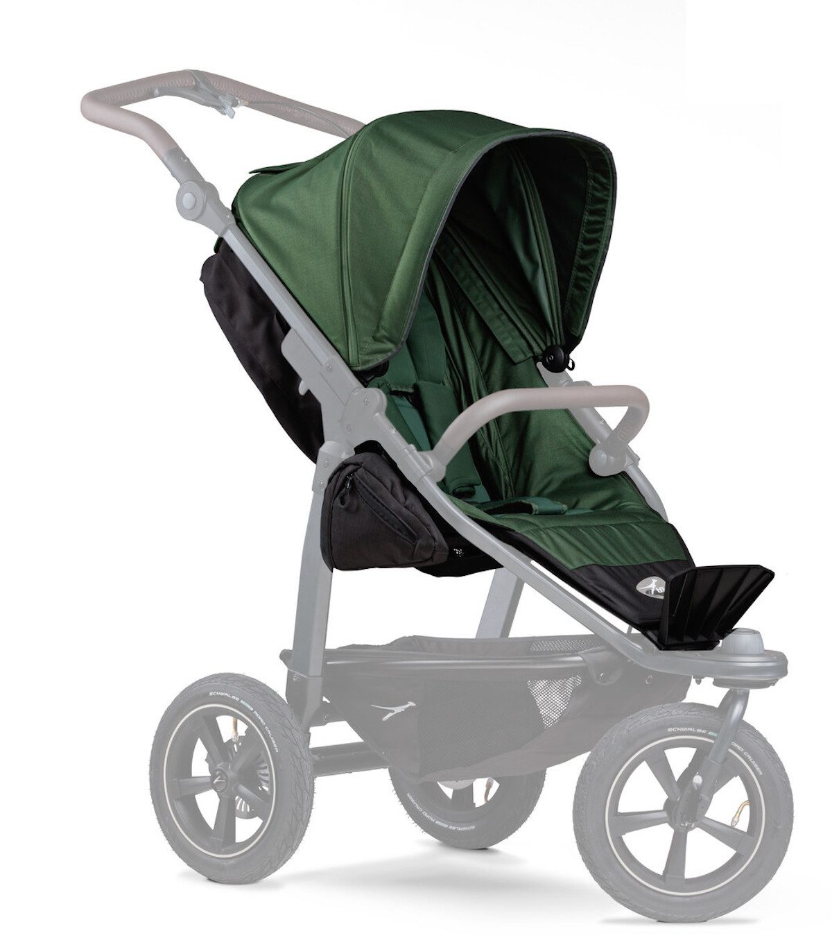 Ich bin die TFK Sportkinderwagensitz Einhang und sorge dafür das Ihr Euren TFK Mono 2 Kombikinderwagen noch länger nutzen könnt. Ihr befestigt mich einfach per Druckknöpfe am Rahmen Eures Mono Kinderwagens. Im Set enthalten sind das Fußbrett, damit Euer Schatz seine Füße bequem abstellen kann, das Verdeck mit Lüftungsoptionen und UV-Schutz und der Sicherheitsbügel um Euren Schatz vor dem Herausfallen zu schützen. Den 5-Punkt-Gurt entnehmt Ihr einfach Eurer bereits am Wagen enthaltenen TFK Mono Kombieinheit. Ihr könnt Euer Kind ab 9 Monaten oder nach dem die Kombieinheit zu klein geworden ist in mir transportieren. Все Funktionen wie stufenlose Einstellung der Rückenlehne und verstellen des Fußbrettes sind weiterhin wie gewohnt über den Rahmen des Kinderwagens möglich.