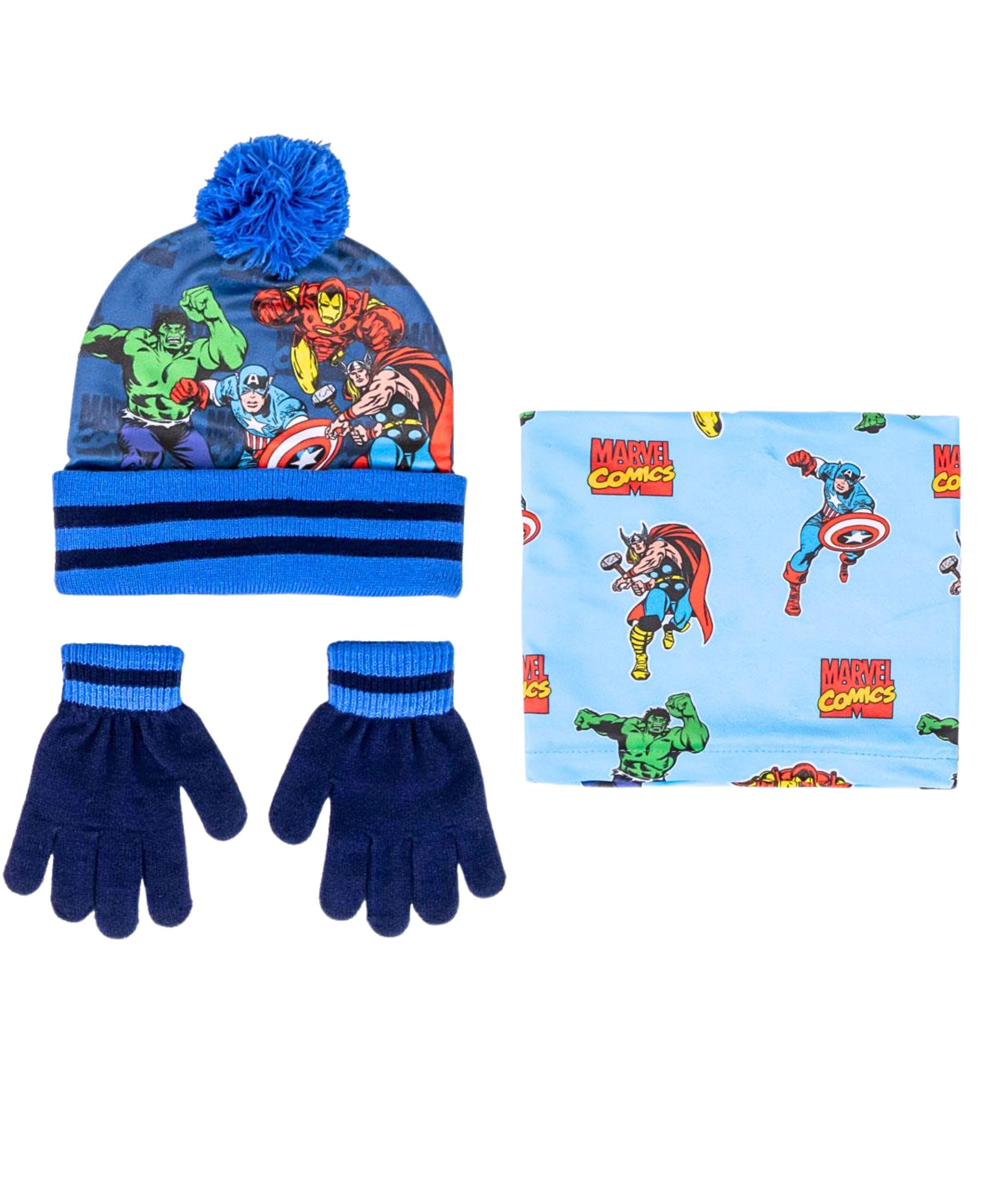 Kleine Avengers-Fans werden dieses 3-teilige Set aus Mütze, Handschuhen und Schlauchschal lieben, das sie auf ihren winterlichen Missionen begleitet.