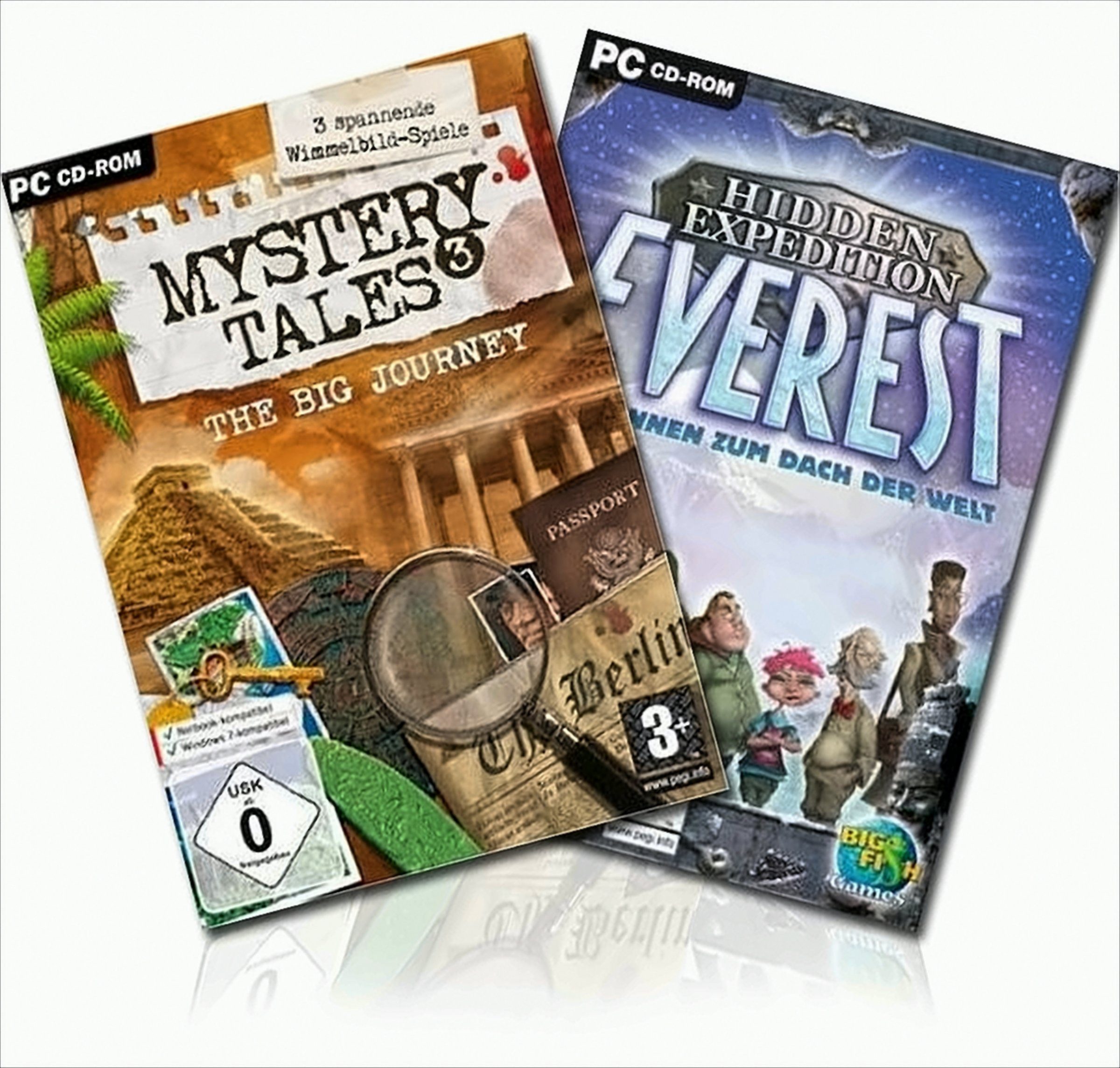 Spielbeschreibung | Mystery Tales Tale of a Hero ist ein klassisches Point and Click-Adventure, dass Sie mitnimmt, auf eine Reise durch eine fantastische Welt voller magischer Geschöpfe und dunkler Geheimnisse. Hexen, böse Eisriesen und Drachen erwarten Sie. Brechen Sie zu Ihrem größten Abenteuer auf, denn die Geschichte Ihres Helden wartet nur darauf geschrieben zu werden! Der junge Olaf liebt das Abenteuer. Gerade noch hat er sein Heimatdorf vor einem finsteren Monster gerettet, als bereits eine neue Aufgabe auf ihn wartet. Erea, die Tochter des Königs, die Olaf noch aus Jugendzeiten kennt, wurde von dem Eisriesen Krugell entführt.Die Hexenmeisterin Pripogala bittet Olaf, dessen Vater ein mächtiger Drachentöter im Dienste des Königs war, um Unterstützung bei der Rettung. Hier beginnt die abenteuerliche Reise des jungen Mannes durch gefährliche Sümpfe, uralte Ruinen, tiefe Labyrinthe und bis zum Grund des Meeres. Nach und nach jedoch beginnt Olaf zu begreifen, dass noch weit mehr hinter der Entführung steckt, als er angenommen hatte... An unzähligen, fantasievoll gestalteten Schauplätzen suchen Sie nach geheimnisvollen Artefakten und begegnen bizarren Kreaturen. Herausfordernde Kombinationsrätsel in klassischer Point and Click- Manier und Dialoge mit seltsamen Kreaturen liefern ein mitreißendes Spielerlebnis und sorgen für langanhaltenden Spielspaß. Eine komplett deutsche Sprachausgabe, märchenhafte Zwischensequenzen und unbeschwerter Humor machen Tale of a Hero zu einem fantasievollen Abenteuer.Hidden Expedition: Everest gerade wieder zurück von einer erfolgreichen Erforschung des Wracks der Titanic lässt der Hidden Expedition Club eines seiner Spitzenmitglieder bei einem Wettlauf zum Gipfel des Everest gegen eine beeindruckende Gruppe von Gegnern antreten. Andere Gruppen versuchen im Wettstreit mit Ihnen, zuerst den Gipfel von Mount Everest zu erreichen. Der erfahrene Everest-Bergsteiger Ed Viesturs wird Ihnen entlang des Weges helfen. |