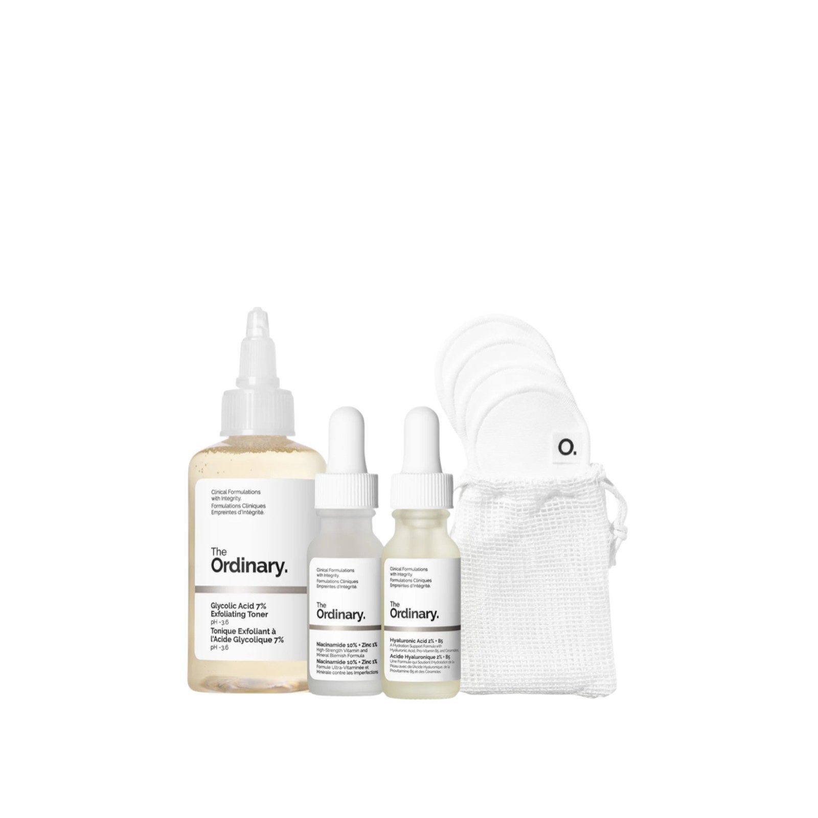 Inhaltsstoffe | Glycolic Acid 7% Exfoliating Toner: Aqua (Water). Glycolic Acid. Rosa damascena flower water. Centaurea cyanus flower water. Aloe Barbadensis Leaf Water. Propanediol. Glycerin. Triethanolamine. Aminomethyl Propanol. Panax Ginseng Root Extract. Tasmannia Lanceolata Fruit/Leaf Extract. Aspartic Acid. Alanine. Glycine. Serine. Valine. Isoleucine. Proline. Threonine. Histidine. Phenylalanine. Glutamic Acid. Arginine. PCA. Sodium PCA. Sodium Lactate. Fructose. Glucose. Sucrose. Urea. Hexyl Nicotinate. Dextrin. Citric Acid. Polysorbate 20. Gellan Gum. Trisodium Ethylenediamine Disuccinate. Sodium Chloride. Hexylene Glycol. Potassium Sorbate. Sodium Benzoate. 1.2-Hexanediol. Caprylyl Glycol. Niacinamide 10% + Zinc 1%: Aqua (Water). Niacinamide. Pentylene Glycol. Zinc PCA. Tamarindus Indica Seed Gum. Xanthan Gum. Isoceteth-20. Ethoxydiglycol. Phenoxyethanol. Chlorphenesin. Hyaluronic Acid 2% + B5: AQUA (WATER), SODIUM HYALURONATE, PROPANEDIOL, PENTYLENE GLYCOL, HYDROLYZED HYALURONIC ACID, SODIUM HYALURONATE CROSSPOLYMER, PHOSPHOLIPIDS, SPHINGOLIPIDS, PANTHENOL, AHNFELTIOPSIS CONCINNA EXTRACT, GLYCERIN, POLYSORBATE 20, CITRIC ACID, SODIUM CITRATE, P-ANISIC ACID, TOCOPHEROL, TRISODIUM ETHYLENEDIAMINE DISUCCINATE, CAPRYLYL GLYCOL, ETHOXYDIGLYCOL, ETHYLHEXYLGLYCERIN, HEXYLENE GLYCOL, PHENOXYETHANOL, CHLORPHENESIN. |