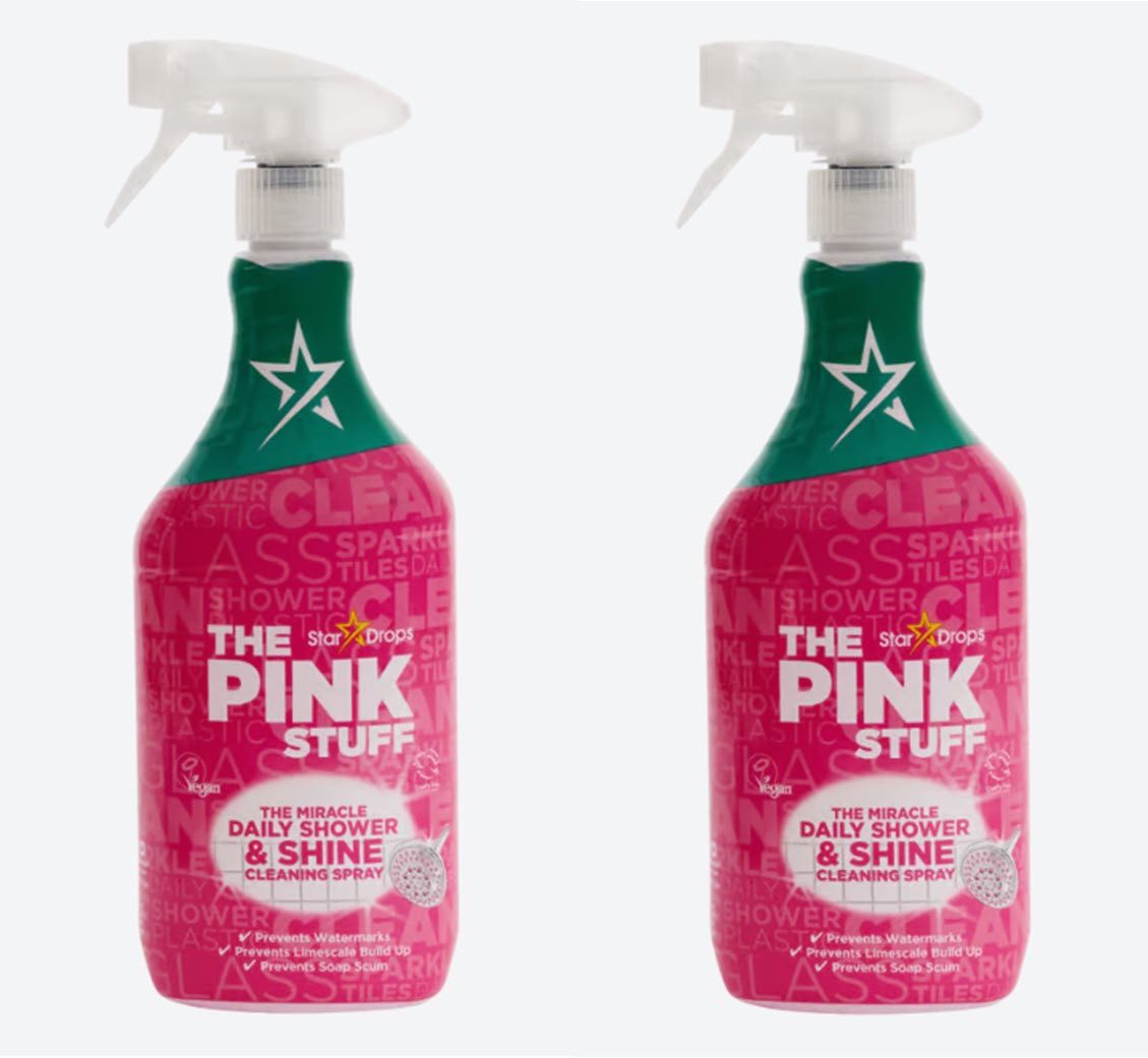 The Pink Stuff Daily Shower & Shine 2 x 850 ml Miracle Reinigungsspray • Zur täglichen Reinigung des Badezimmers • Verhindert Wasserflecken für ein streifenfreies, glänzendes Ergebnis • Bekämpft Seifenreste und hilft, Kalkablagerungen zu reduzieren