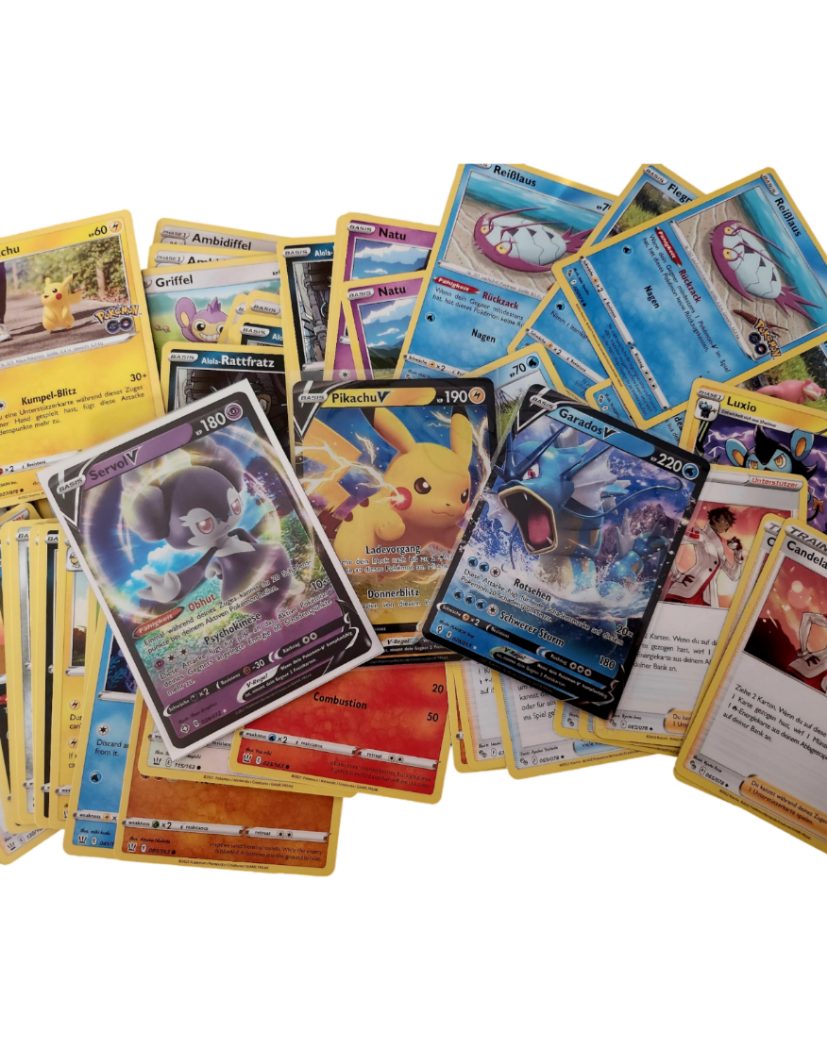 Sie kaufen hier eine exklusive Sammlung von 100 originalen Pokemon Karten. Diese Karten sind perfekt für Pokemon-Sammler, Enthusiasten und Spieler aller Altersgruppen und lassen die Herzen von Pokemon-Fans höherschlagen. In diesem Set enthalten ist eine V-Karte und eine Reverse-Karte, die Ihnen dabei helfen, Ihre Sammlung zu erweitern und Ihren Gegnern in Pokemon-Kämpfen die Stirn zu bieten. Diese Karten sind besonders wertvoll und begehrt. Die Karten wurden sorgfältig ausgewählt und befinden sich in einem guten bis sehr guten Zustand. Es könnte eine Mischung aus neuen und älteren Karten sein, sodass eine Vielzahl von Pokemon-Generationen vertreten ist. Jede Karte ist ein offizielles und lizenziertes Produkt von Pokemon. Bitte beachten Sie, dass die 100 Karten in diesem Set zufällig ausgewählt werden. Sie erhalten jedoch eine V-Karte und eine Reverse-Karte, die sicherlich einen besonderen Platz in Ihrer Sammlung einnehmen werden. Dieses Angebot ist ideal für Sammler, die ihre Pokemon-Karten-Sammlung erweitern oder neue Karten für den Wettkampf suchen. Nutzen Sie diese Gelegenheit und ergänzen Sie Ihre Sammlung um 100 aufregende Pokemon-Karten! Bitte zögern Sie nicht, mich zu kontaktieren, falls Sie Fragen haben. Viel Glück bei Ihrer Gebotabgabe und viel Spaß mit Ihrer neuen Pokemon-Karten-Sammlung! Sicherheitshinweis:Achtung!Nicht für Kinder unter 3 Jahren geeignet Verschluckungsgefahr.
