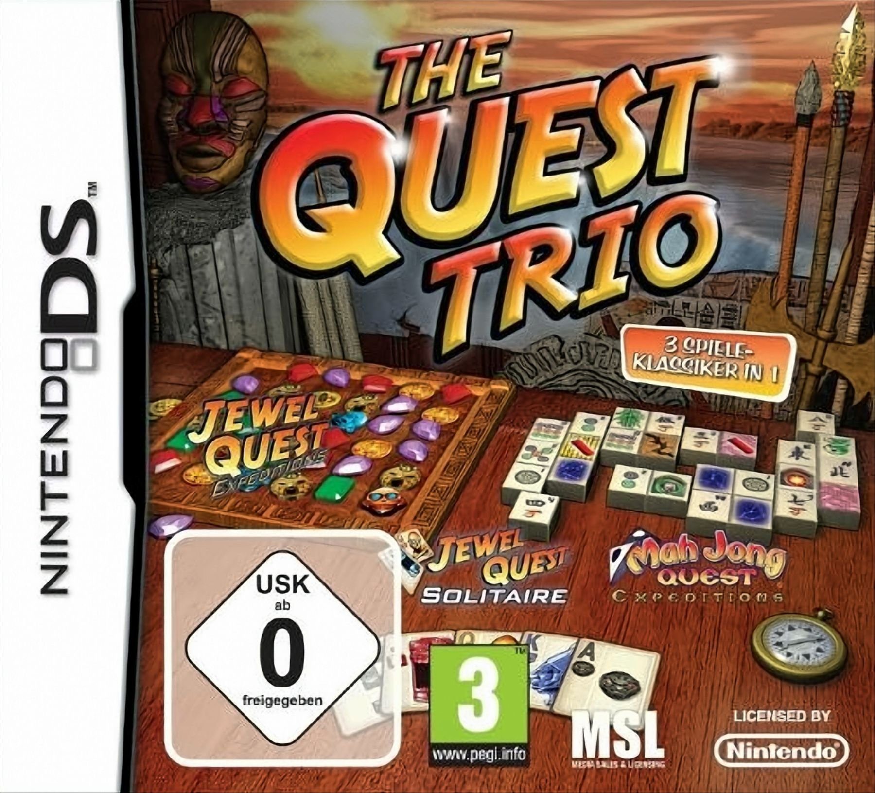 Spielbeschreibung | Die Sammlung enthält die beliebten Spiele Jewel Quest Expeditions, Jewel Quest Solitaire und Mah Jong Quest Expeditions und bietet damit drei vollwertige Spiele in einem Paket. Mit über 180 Spielfeldern bei Jewel Quest Expeditions, einer packenden Story und über 65 Missionen in Mah Jong Quest Expeditions sowie mehr als 100 Layouts und über 650 Spielszenarien in Jewel Quest Solitaire, bietet "The Quest Trio" eine volle Packung Spielspaß für alle Puzzle-Fans.Spannung pur garantiert das Puzzel Jewel Quest Expeditions: Spielfigur Rupert muss hart auf einem heruntergekommenen Schiff arbeiten. Im Spielverlauf muss er weitere spannende Quests wie Bazar, Safari, Victoria-Wasserfälle und Groß-Simbabwe lösen - erst wenn er alle Spielfelder in Gold umgewandelt hat, gelangt er in den jeweils nächsten Level.In Jewel Quest Solitaire kehrt der Historiker und Dozent Percy Pack verwirrt aus dem Dschungel Mexikos zurück. Mit jedem gelösten Solitärblatt schaltet der Spieler nicht nur die nächsten Spielfelder frei, sondern erfährt auch nach und nach die Geschichte des Professors und das mysteriöse Geheimnis dahinter. In den drei Spielmodi Abenteuer, Suche und Karten hält das Spiel zahlreiche Herausforderungen bereit, bei denen Puzzle-Fans voll auf ihre Kosten kommen. Das Abenteuer gestaltet sich dabei ganz individuell - abhängig davon, wie die Herausforderungen durch den Spieler gemeistert werden.In Mah Jong Quest Expeditions stehen dem Spieler Mah Jong Klassik, Mah Jong Rätsel und Kwazis Quest zur Auswahl. Mah Jong Klassik bietet 32 verschiedenen Anordnungen in drei Schwierigkeitsgraden, Mah Jong Rätsel enthält zusätzlich zum klassischen Mah Jong knifflige Denkaufgaben in verschiedenen Spielvariationen wie Klassisch, Blitz, Mix und Memory. In Kwazis Quest reist der Puzzler mit demSprache/Untertitel: DeutschHandbuch: Deutsch |