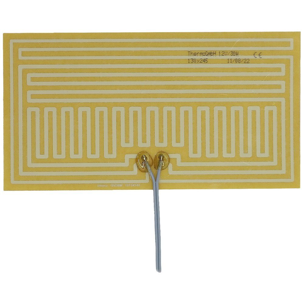 Warnhinweise | Aufgrund hoher Heizleistung, bezogen auf die Fläche, kann die Heizfolie je nach Einbausituation, ohne ausreichende Kühlung oder Temperaturregelung, überhitzen und dadurch zerstört werden! Die angegebene Oberflächentemperatur entspricht einem Mittelwert bei einer Umgebungstemperatur von 20 °C (45% rF) in unbewegter Luft! Die erzielte "Heiztemperatur" ist extrem von externen Einflüssen wie Vorhandensein und Art des Untergrundes, thermische Isolation, Umgebungstemperatur, Luftströmung, Luftfeuchte, Betriebsspannung und Toleranzen abhängig. |