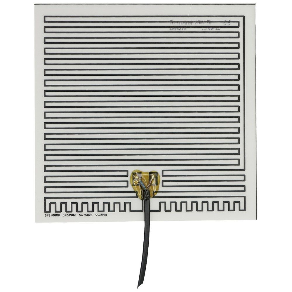 Warnhinweise | Aufgrund hoher Heizleistung, bezogen auf die Fläche, kann die Heizfolie je nach Einbausituation, ohne ausreichende Kühlung oder Temperaturregelung, überhitzen und dadurch zerstört werden! Die angegebene Oberflächentemperatur entspricht einem Mittelwert bei einer Umgebungstemperatur von 20 °C (45% rF) in unbewegter Luft! Die erzielte "Heiztemperatur" ist extrem von externen Einflüssen wie Vorhandensein und Art des Untergrundes, thermische Isolation, Umgebungstemperatur, Luftströmung, Luftfeuchte, Betriebsspannung und Toleranzen abhängig. |