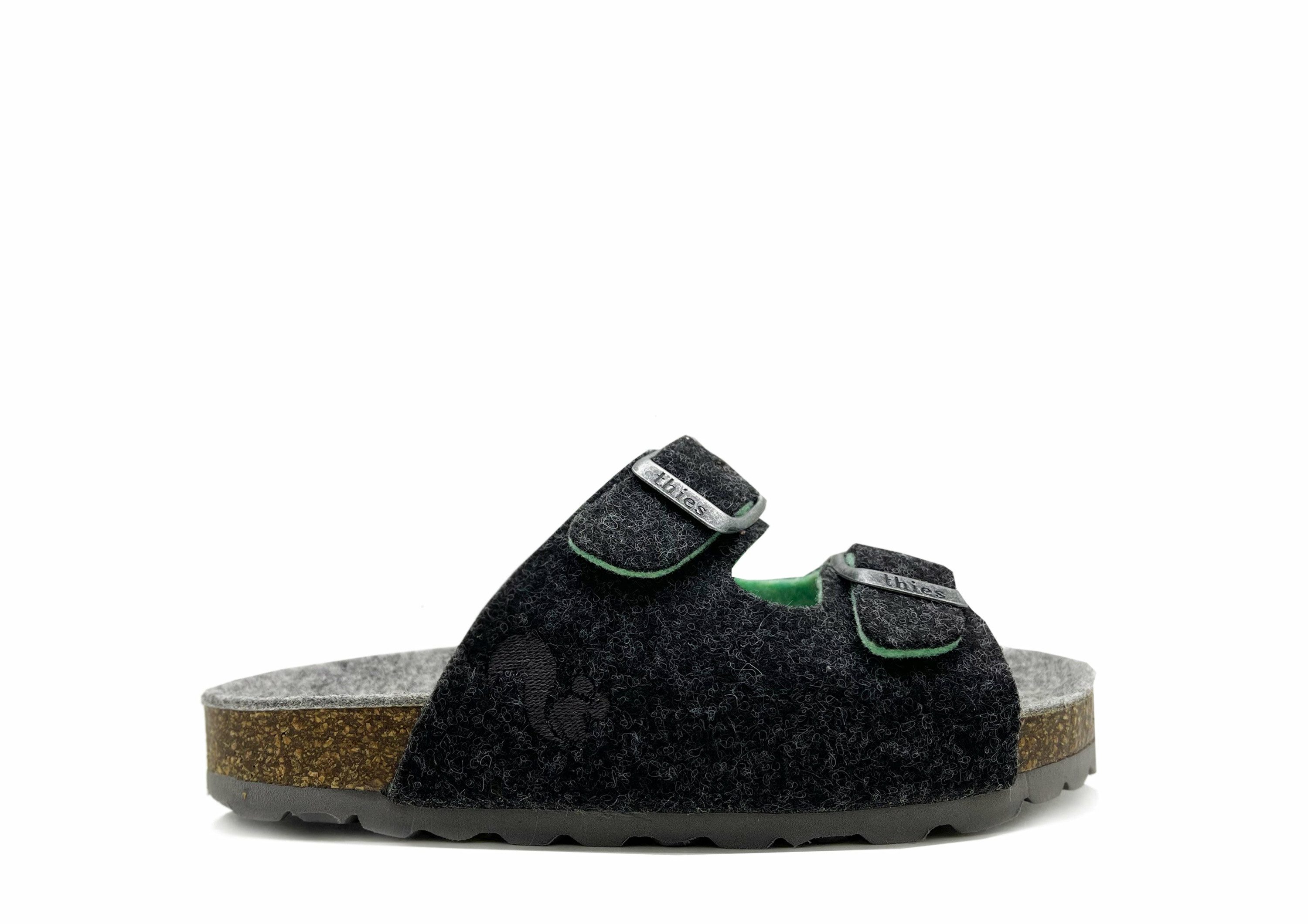 Die Recycled PET Bio Filz-Sandalen von thies ® sind aus weichem Filz, dass aus recycelten post-consumer PET Flaschen hergestellt wird. Die Sandalen sind ultraleicht, die Laufsohle aus recyceltem Kork und recyceltem EVA ohne störende Nähte hergestellt. Ergonomisch geformtes weiches Tieffussbett. Der Schuh eignet sich super zum barfuss tragen!Die Schuhe sind so bequem und non-marking dass sie sich perfekt im Innenbereich, in der Schule, im Hort, Verein etc eignen.Die Silhouette und Passform ist zeitlos und stylish. Der ideale, nachhaltige Lieblingsschuh für den Alltag! GRS ® zertifizert und Peta ® approved vegan. Fair produziert in Spanien.Die Verpackung ist ebenfalls umweltfreundlich und komplett aus recyceltem Papier hergestellt.Außenmaterial & Innenfutter: Filz aus recycelten PET Flaschen [ GRS ® zertifiziert ]Fußbett: recycelter KorkLaufsohle: leichtes recycelbares EVA100% vegan [ Peta approved ]Passform: normal ____________________________________________________ The Recycled PET organic felt sandals from thies ® are made of soft felt that is made from recycled post-consumer PET bottles. The sandals are ultra-lightweight, the outsole is made of recycled cork and recycled EVA without distracting seams. Ergonomically designed soft deep footbed. The shoe is super suitable for barefoot wear!The shoes are so comfortable and non-marking that they are perfect indoors, school, after-school, club, etc.The silhouette and fit is timeless and stylish. The ideal favorite sustainable shoe for everyday wear!GRS ® certified and Peta ® approved vegan. Fairly produced in Spain.The packaging is also eco-friendly and made entirely from recycled paper.Outer material & lining: felt made from recycled PET bottles [ GRS ® certified ].Footbed: recycled corkOutsole: lightweight recyclable EVA