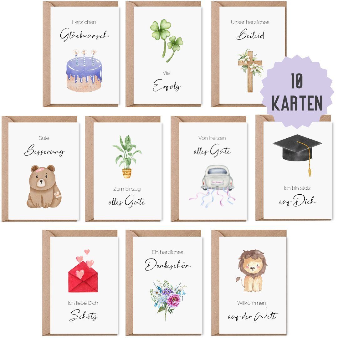 LIEFERUMFANG 10 Klappkarten und 10 Umschläge, Motive wie abgebildet MADE WITH LOVE Als junges Frauen-Gründerteam legen viel Wert auf hochwertige Materialien. Solltest Du dennoch mal nicht zufrieden sein, melde Dich bei uns und wir finden eine Lösung!