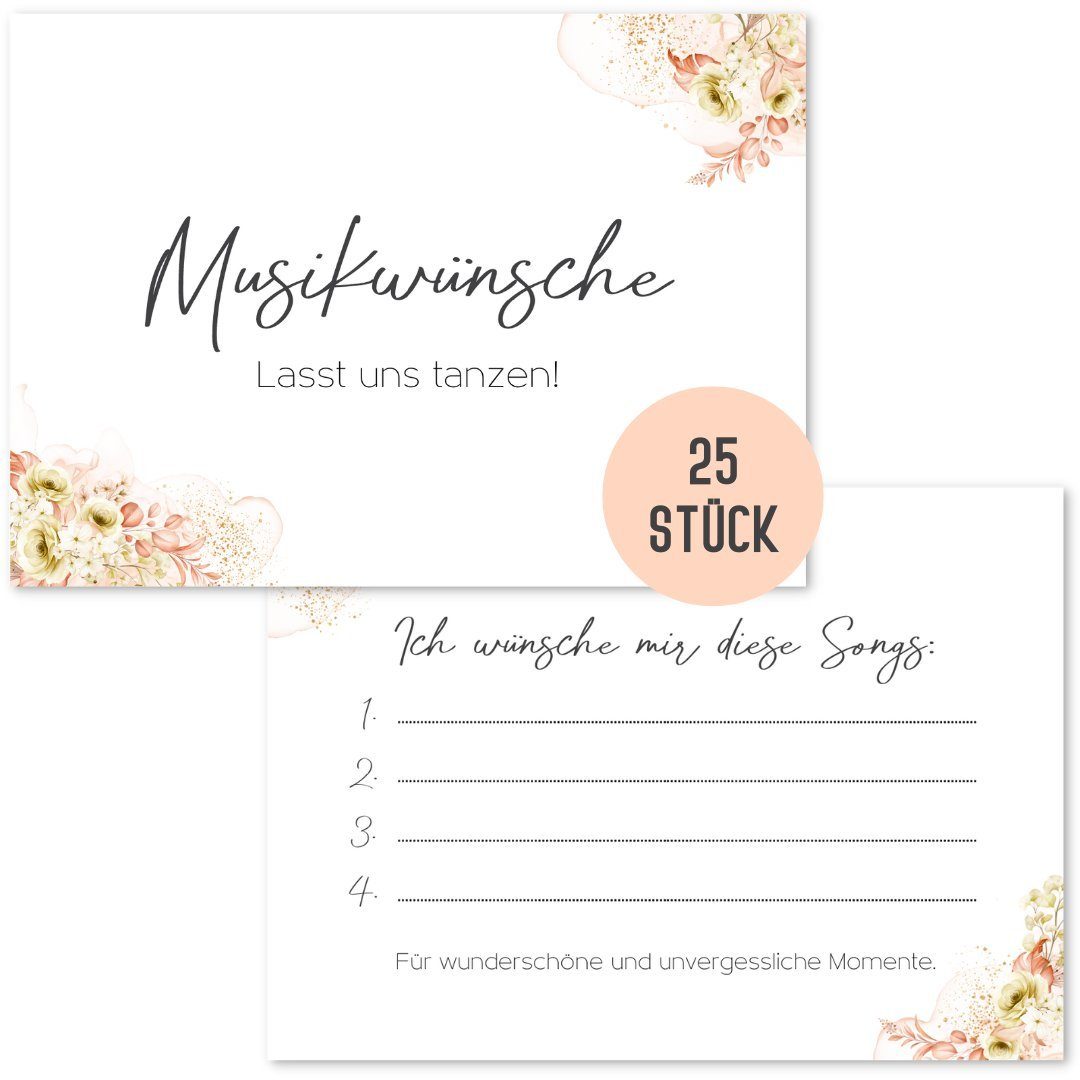 MUSIKKARTEN » Mit den Karten im DIN A7 Format können Deine Gäste bei der Hochzeit, Geburtstag, Weihnachtsfeier, Silvester, Jubiläum, … mitbestimmen, welche Songs gespielt werden.