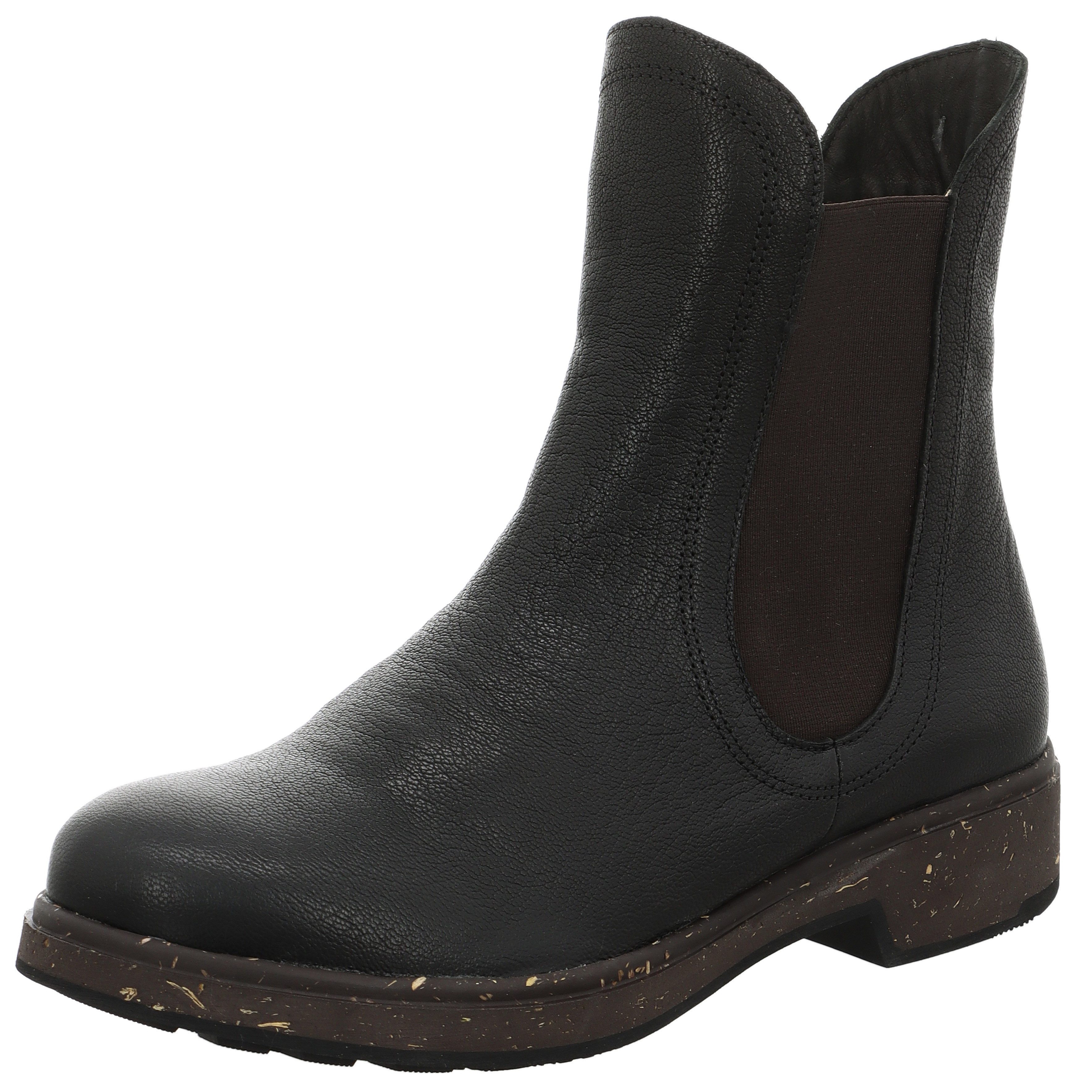Das vegetabil gegerbte Obermaterial besteht aus Leder. Die profilierte Gummi-Sohle der Chelseaboots sorgt für mehr Rutschfestigkeit auf unebenem Untergrund. Die herausnehmbare Leder-Innensohle ermöglicht zusätzliche Flexibilität und erlaubt die Einbringung von individuellen Einlagen oder orthopädischen Sohlen. Der Blockabsatz und die runde Schuhspitze passen sich gut der natürlichen Fußform an und bieten viel Tragekomfort. Schmale bis normale Füße finden in diesen Chelseaboots der Weite F optimalen Komfort.
