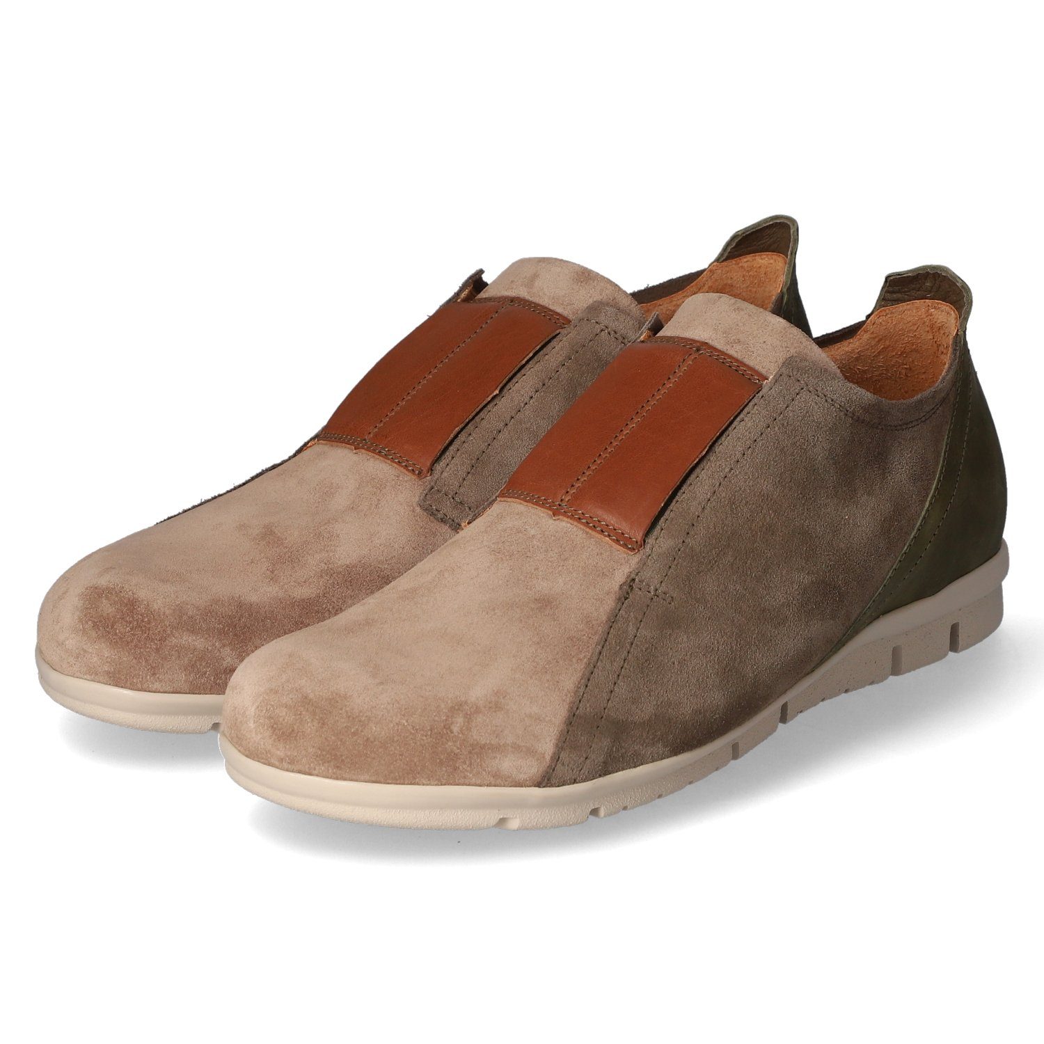 Think! Herren sportliche Slipper/ Slipper KING Grün/Braun Leder - Ziernähte - verstärkter Einstieg - verstärkte Ferse - gepolstertes Wechselfußbett - flexible, rutschhemmende Laufsohle
