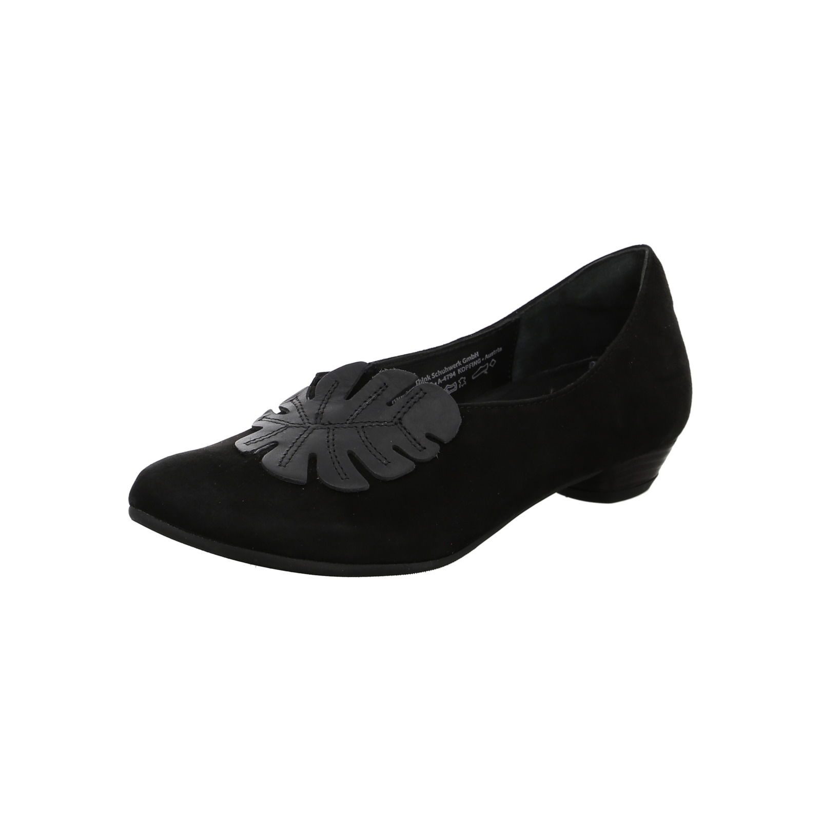 Elegante Pumps mit hübscher Leder-Applikation eines Monsterablatts