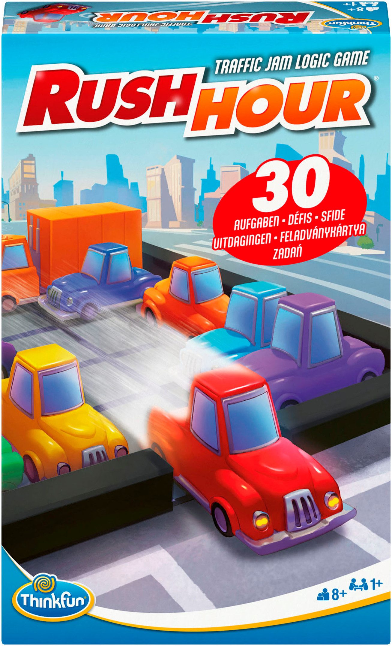 Rush Hour – Der beliebte Klassiker unter den Logikspielen im kompakten Format und damit ideal für unterwegs! Nur wer geschickt die Fahrzeuge auf dem Spielbrett verschiebt, findet für das rote Auto einen Weg aus dem Stau! 30 Aufgaben in drei verschiedenen Schwierigkeitsstufen sind im Spiel enthalten und fordern das logische Verständnis des Spielers mächtig heraus.