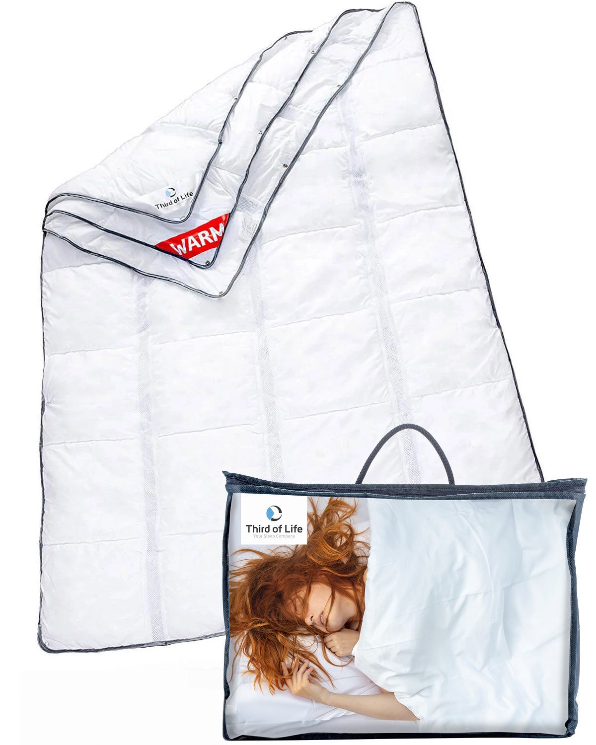 Die innovative Ventifill®-Bettdecke vereint Funktionalität und patentierte Technologie mit außergewöhnlichem Schlafkomfort - für das ganze Jahr. So schaffst du es, schneller einzuschlafen, besser durchzuschlafen und erholter aufzuwachen.Die Bettdecke besteht aus 3 Lagen, die je nach Jahreszeit kombiniert werden können und dich so das ganze Jahr über ideal zudecken. Die Winter-Decke (220g/m2) hält Sie angenehm warm, während die Sommer-Decke (150g/m2) bei heißen Temperaturen für ein angenehm kühles Schlafgefühl sorgt. Für kalte Füße hält die Bettdecke außerdem eine besondere Überraschung bereit: eine separate wärmende Schicht kann optional im Fußbereich ergänzt werden.