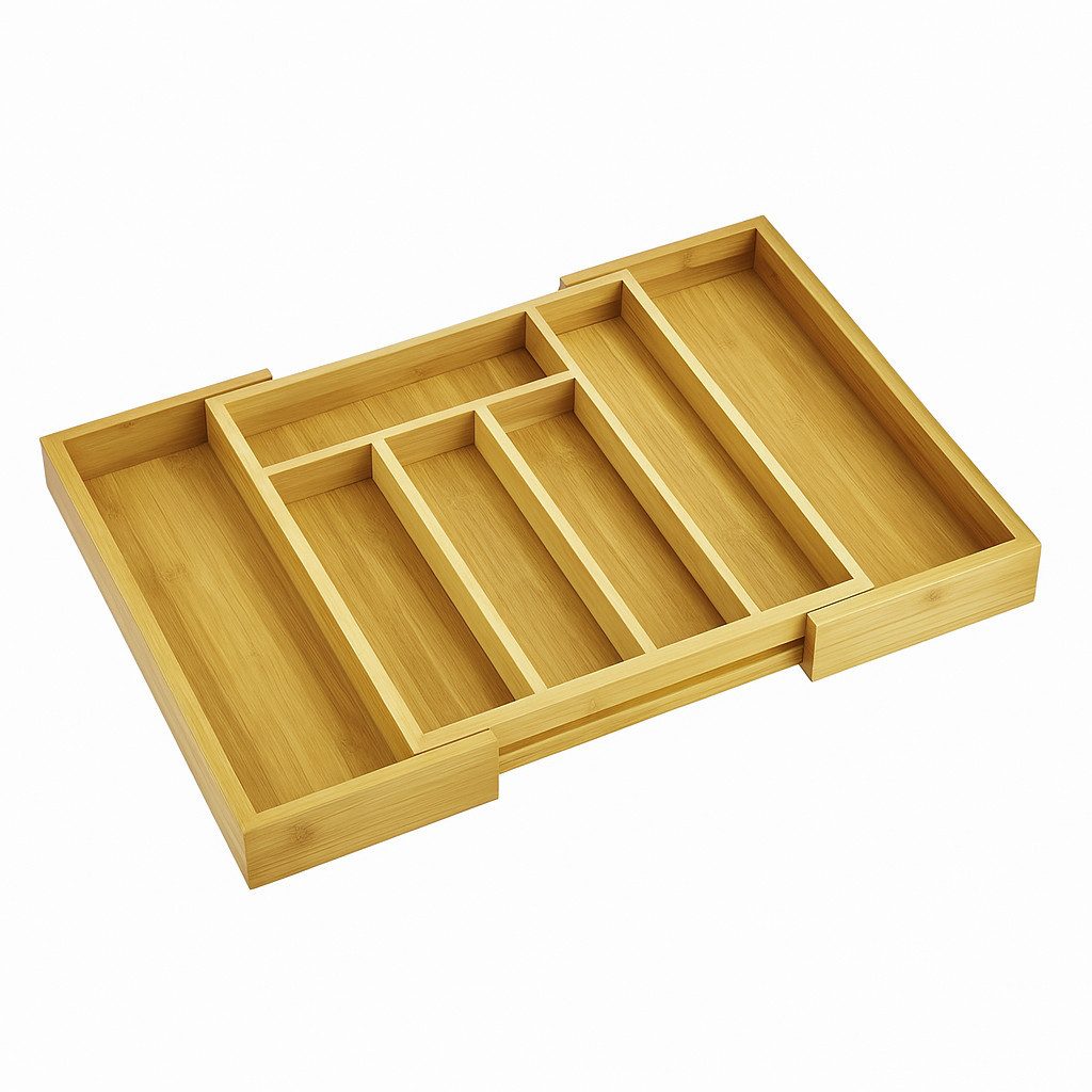 Ordnung mit Stil! Der Besteckeinsatz für Schubladen (33,5 x 29 x 5 cm) aus nachhaltigem Bambus sorgt für eine perfekte Organisation von Besteck & Küchenutensilien. Dank der ausziehbaren Funktion lässt sich der Einsatz von 5 auf 7 Fächer erweitern, sodass er sich individuell an jede Küchenschublade anpassen lässt. Das hochwertige Bambus-Material ist nicht nur robust & langlebig, sondern auch besonders umweltfreundlich. Ideal für eine aufgeräumte Küche mit natürlichem Charme! Jetzt 60 Tage risikofrei testen und von der 5-Jahres-Garantie profitieren!