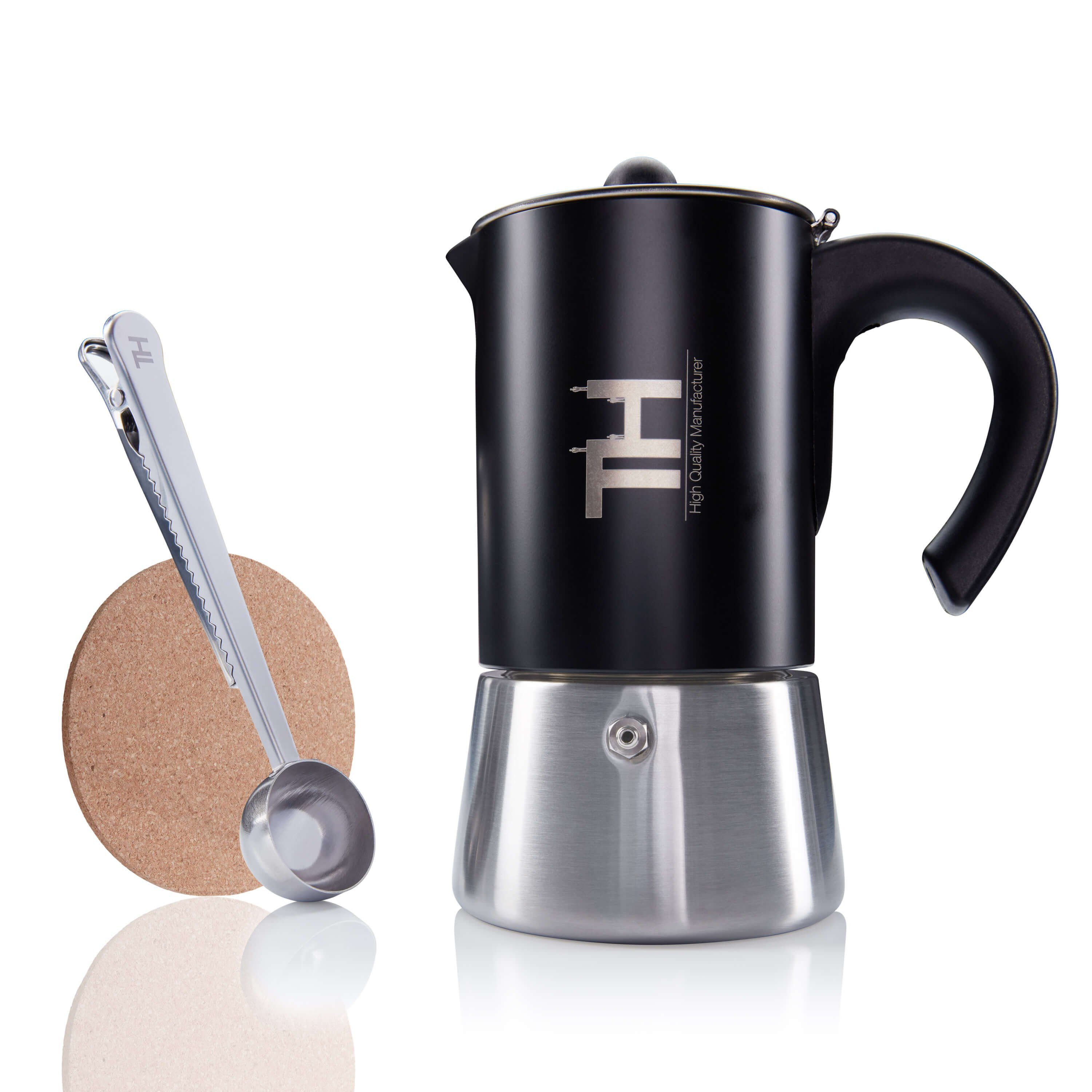Mitgeliefertes Zubehör | Edelstahl Espressokocher Edelstahl Dosierer Zusätzliche Wechseldichtung Hitzebeständiger Untersetzer |