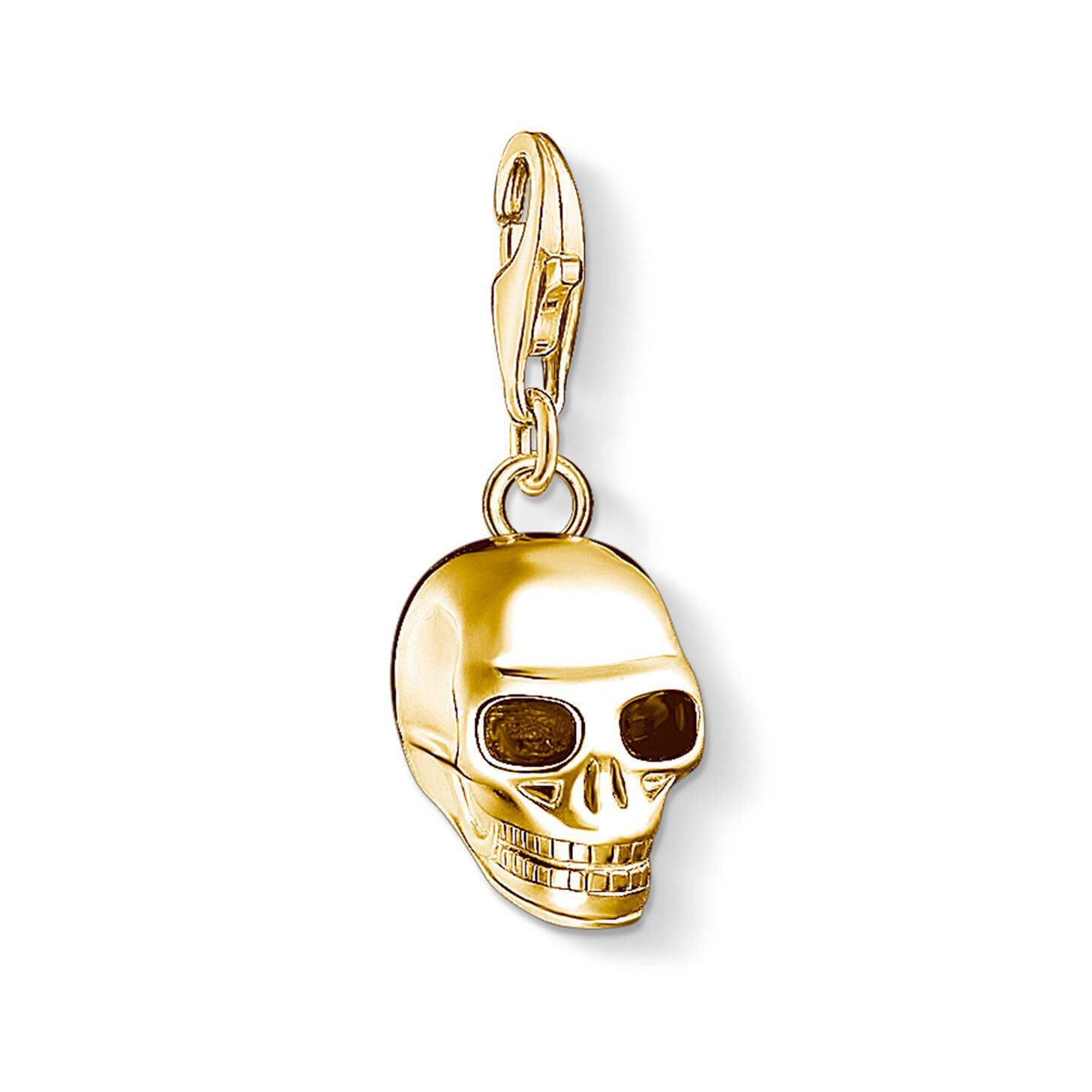 Gelbgoldfarbener Totenkopf Charm-Anhänger von THOMAS SABO. Der Charm ist mit 18 Karat 750 Gelbgold vergoldet.