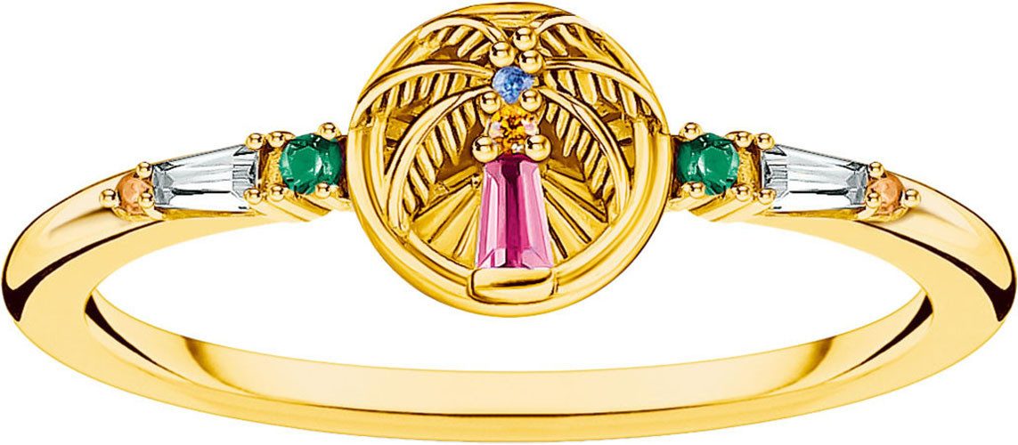THOMAS SABO Fingerring Festival Vibes: Ring mit Palme, TR2457-488-7-52-60, mit Glas-Keramik Stein, Korund (synth), Zirkonia (synth)