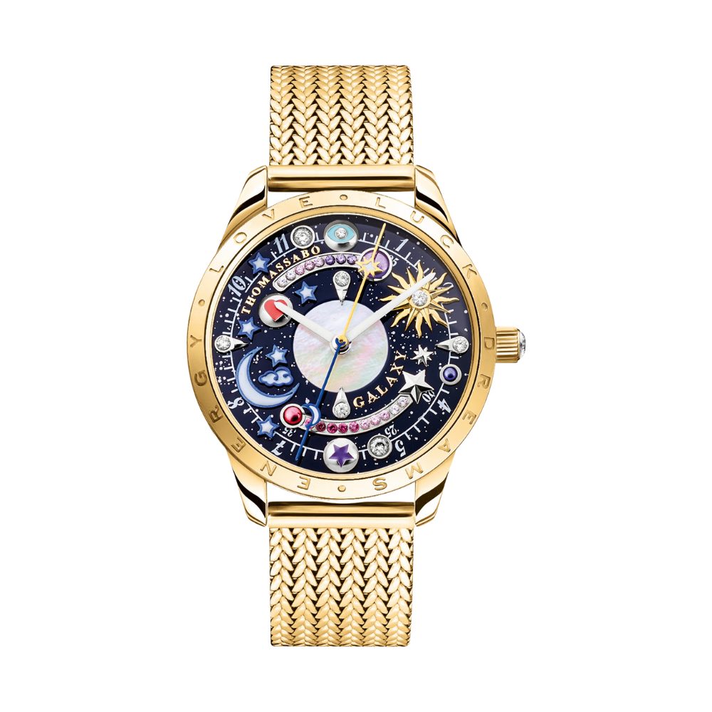 Kosmisch inspiriert und luxuriös inszeniert – die THOMAS SABO Uhr Cosmic Amulet verbindet ein fantasievolles Zifferblatt mit strahlender Vergoldung. Applizierte Himmelskörper, funkelnde Zirkonia und ein elegantes Milanaisearmband machen sie zum stilvollen Begleiter für jeden Tag. Ein Design, das das Universum auf einzigartige Weise am Handgelenk erlebbar macht.
