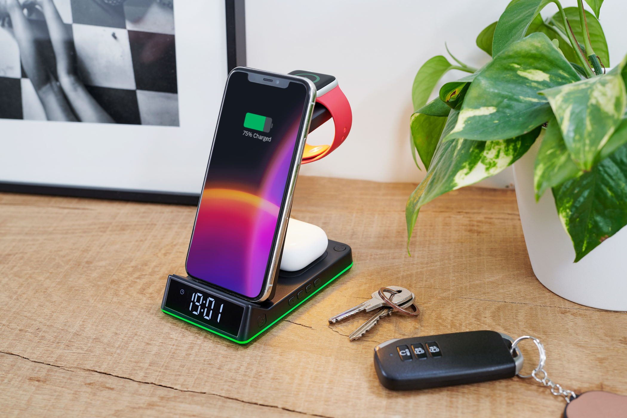 • 4-in-1 Wecker, Ladestation, Nachtlicht