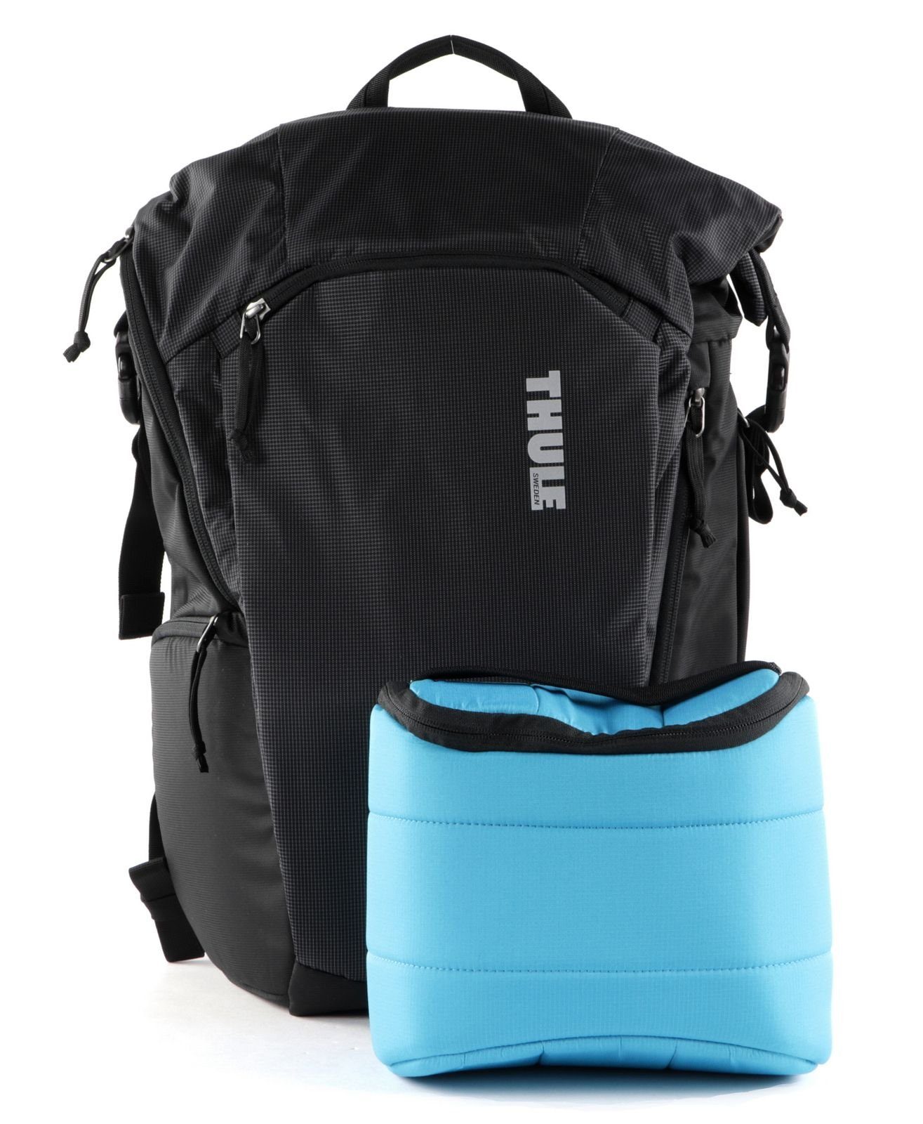 Die Marke THULE steht für Hochwertigkeit, Design, Kreativität und Outdoor. In dieser Tasche sind all diese Eigenschaften vereint. Das Design ist einzigartig. Viele Verschlüsse sichern alle wichtigen Gegenstände, wie Handy, Tablet und Laptop im Innern des Rucksacks. Im THULE EnRoute Camera Backpack 25L können Sie Ihre Kamera gepolstert, sicher an der Seite verstauen. Der Einsatz ist gepolstert und mit herausnehmbaren Polstereinsätzen ausgestattet. Diese können mit einem Klettverschluss schnell und einfach herausgenommen werden. Wenn Sie die Kameratasche herausnehmen, können Sie mit einem Gummizug die innenliegende Tasche komprimieren, sodass diese im Inneren des Rucksacks Sie nicht stört. Und das Beste an diesem Rucksack ist: Er ist bequem!