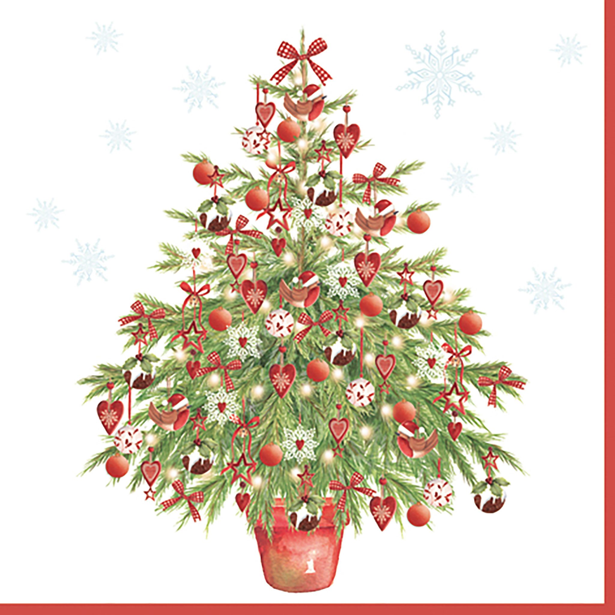 PRODUKT: Weihnachtsservietten mit Christbaum / MATERIAL: Tissue - Papier, FSC zertifiziert / GRÖSSE: ca. 33 x 33 cm (entfaltet) bzw. 16,5 x 16,5 cm (gefaltet) / FALTUNG: 1/4 Falz /