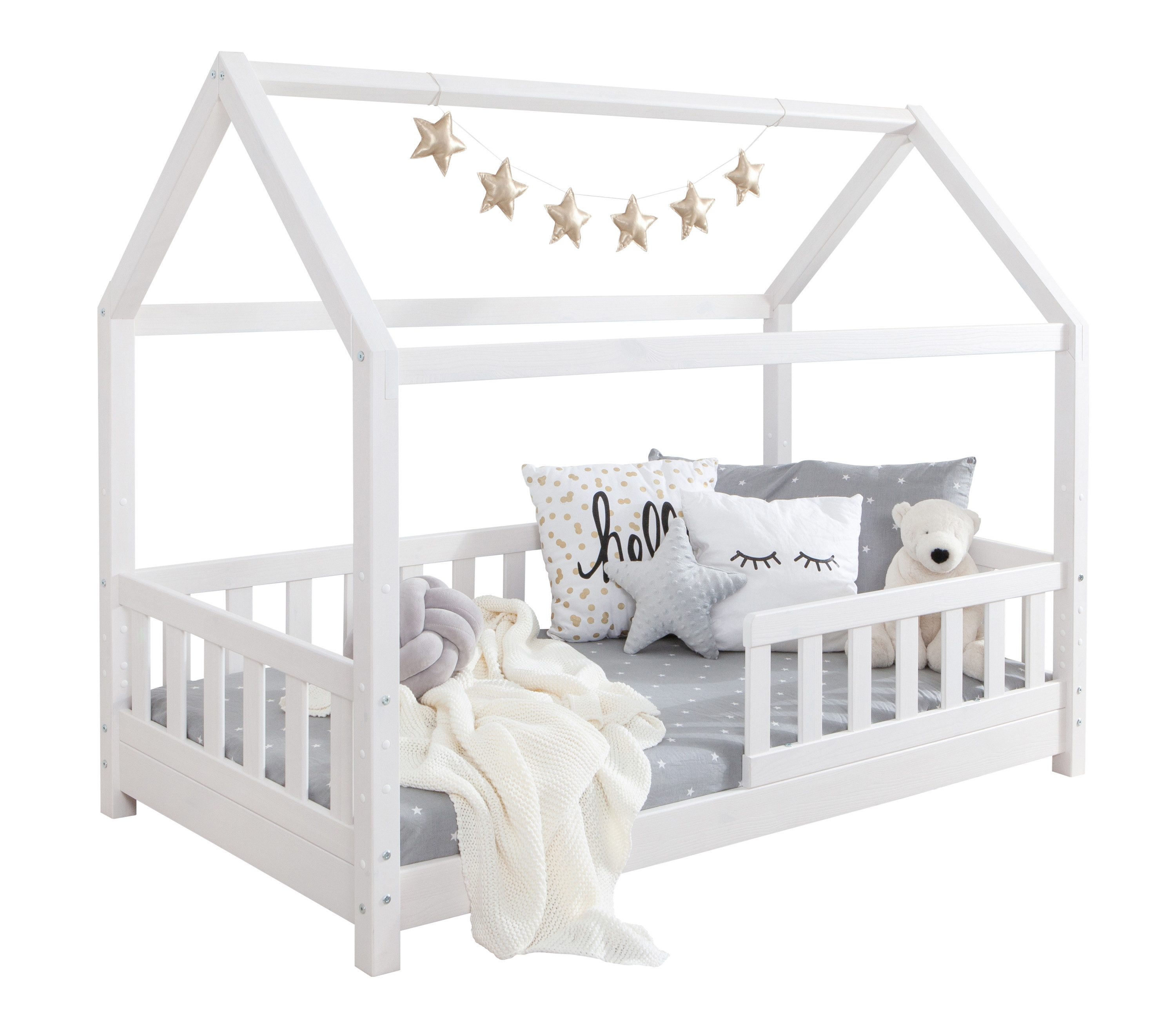 Lieferumfang | Hausbett inkl. Rollrost, Montagematerial und Montageanleitung (ohne Matratze und Dekoration) |