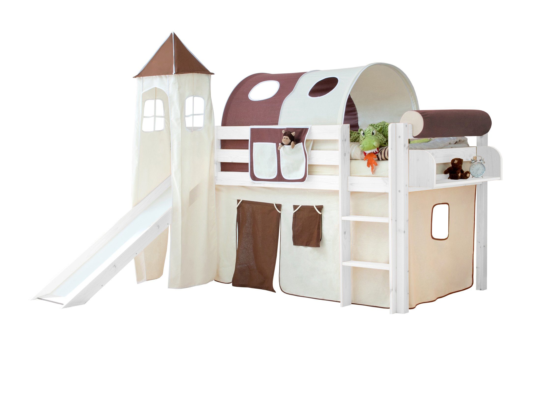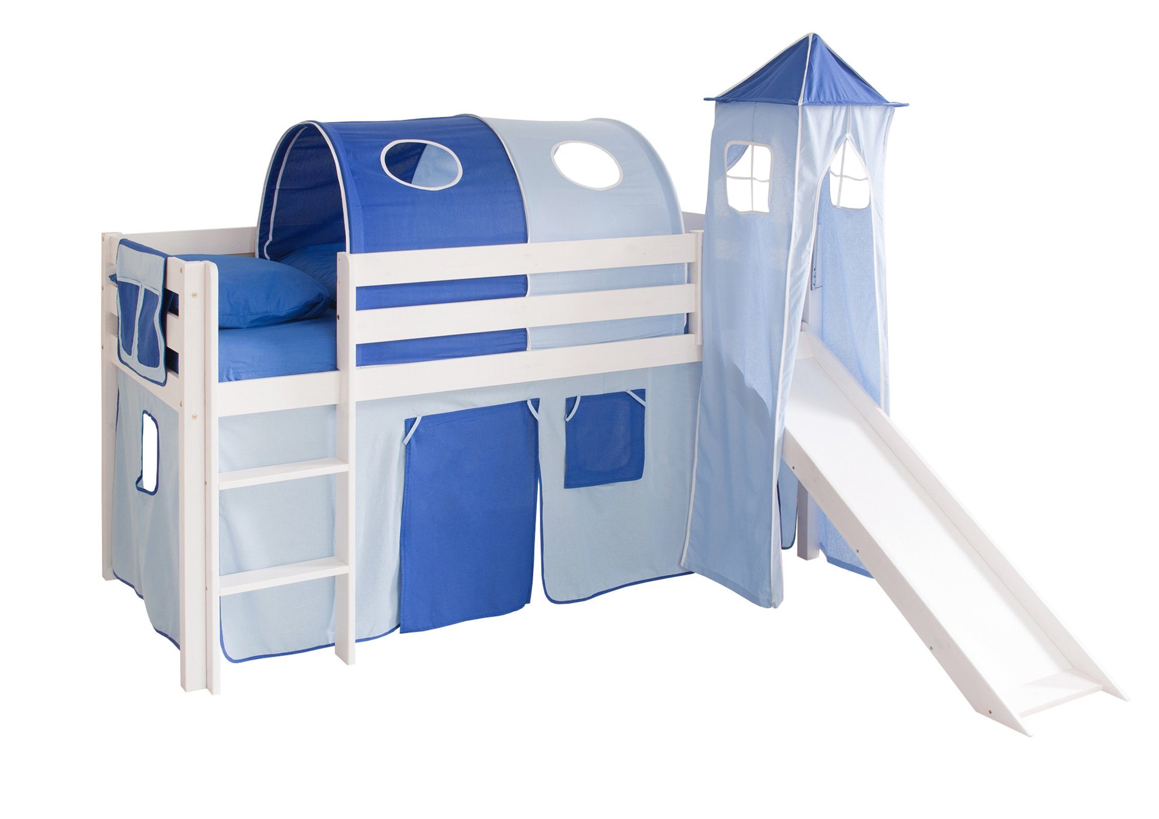 Lieferumfang | inkl. Vorhangstoff nach Wahl, Montagematerial und Montageanleitung (ohne Rollrost, Tunnel, Tasche, Regal und Matratze) |