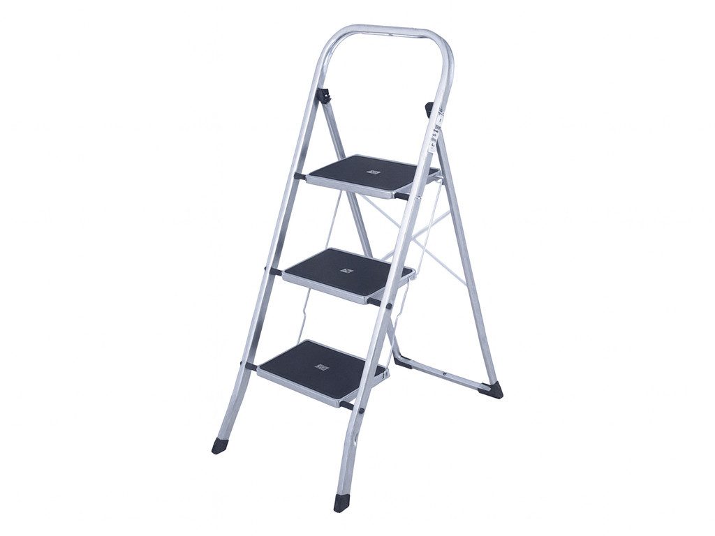 Die 3-stufige Stehleiter sorgt für sicheres Arbeiten bei alltäglichen Aufgaben wie Fensterputzen, Glühbirnen wechseln oder beim Erreichen höherer Regale. Die breiten Trittflächen mit rutschfestem Belag garantieren einen stabilen Stand.