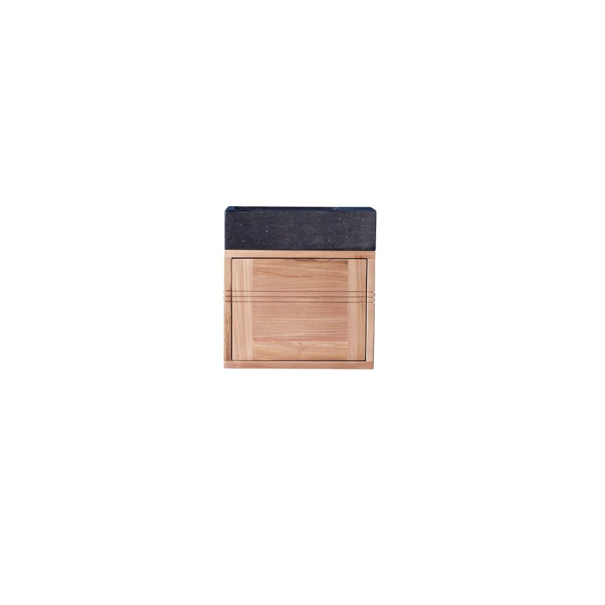 Waschtisch Badunterschrank aus Teak und Waschbecken aus schwarzem Marmor Basic bl