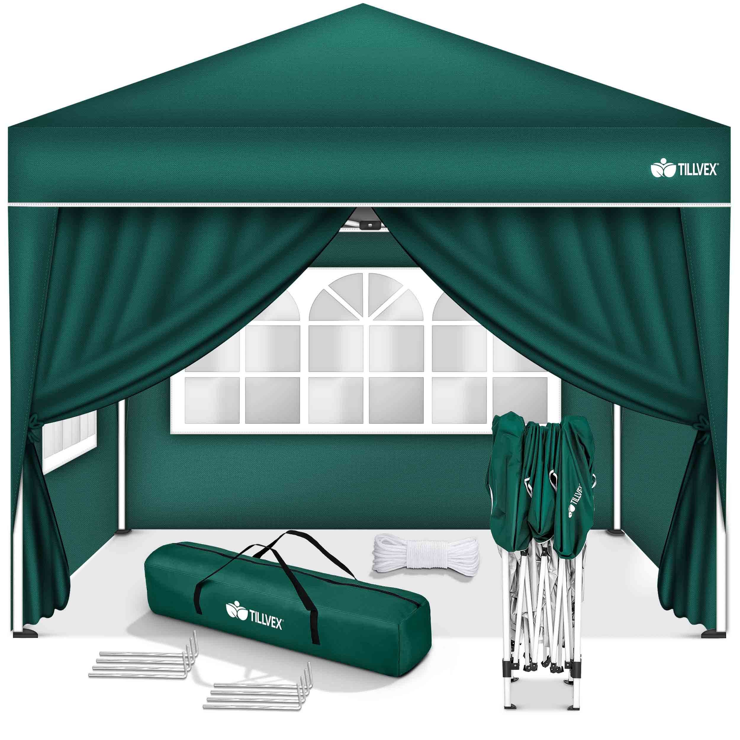 tillvex Pavillon 3x3m wasserdicht | Pop-Up Faltpavillon höhenverstellbar | Gartenzelt UV Schutz 50+ | Partyzelt mit Tasche für Garten
