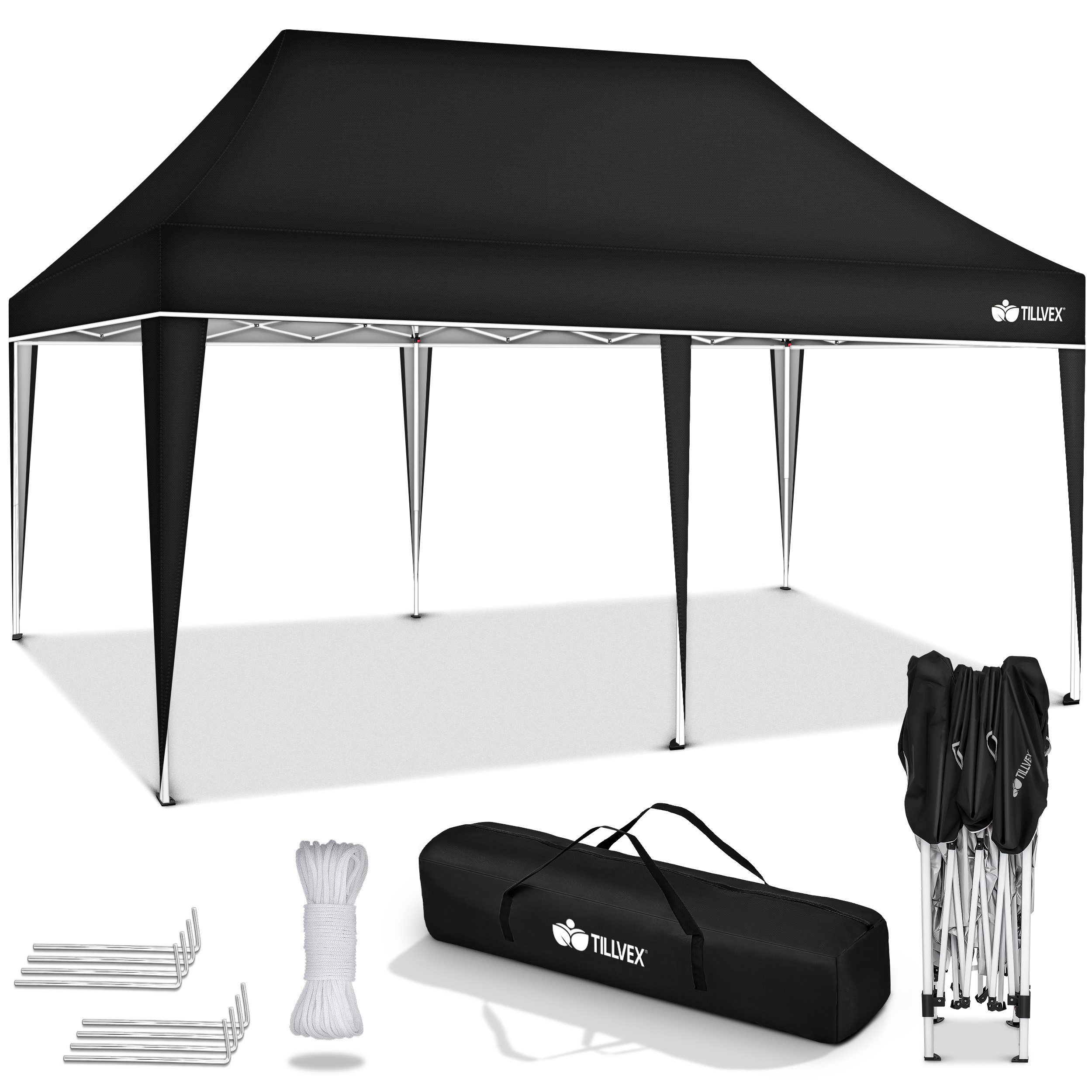 tillvex Pavillon 3x6m wasserdicht | Pop-Up Faltpavillon höhenverstellbar | Gartenzelt UV Schutz 50+ | Partyzelt mit Tasche für Garten