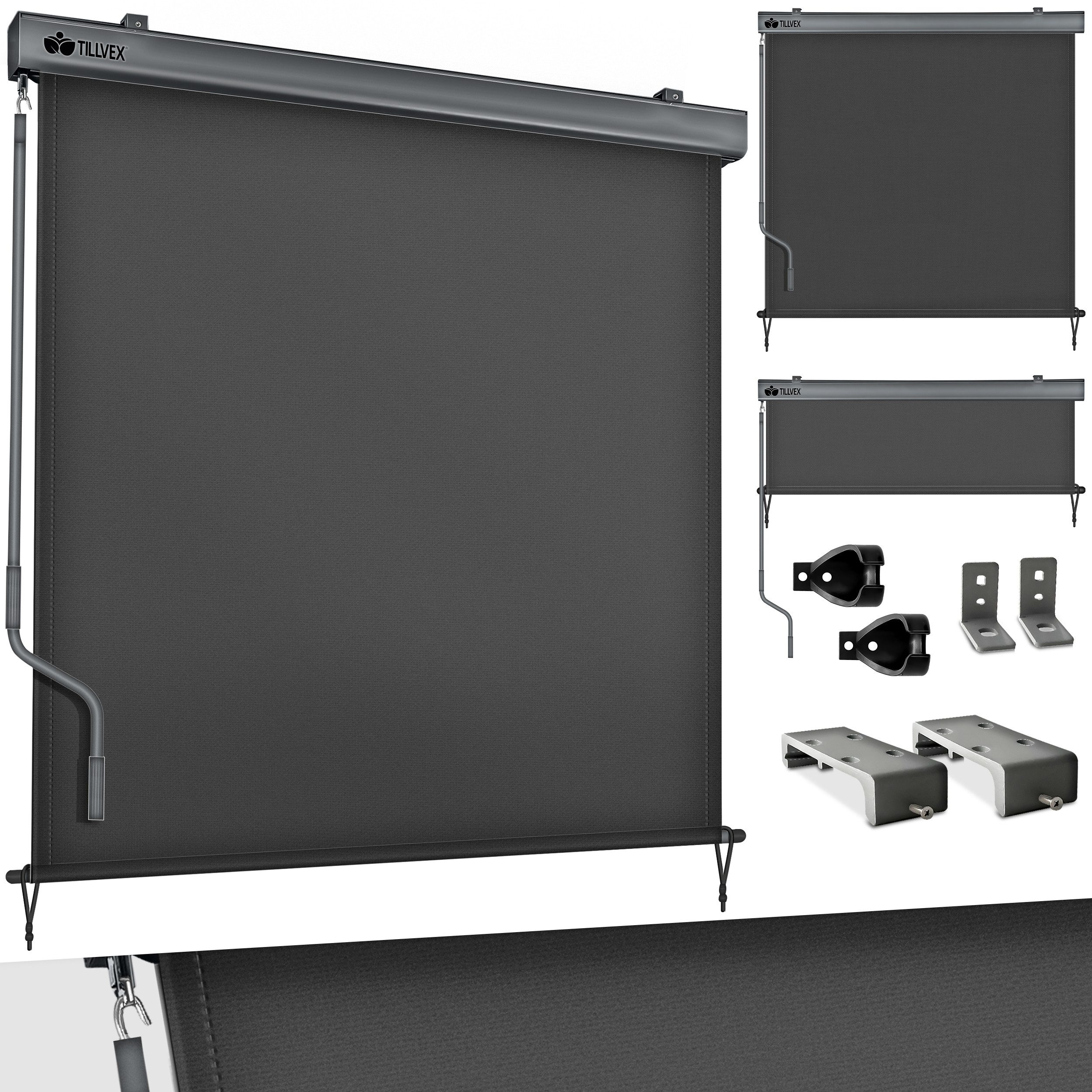 tillvex® Senkrechtmarkise für Außen- und Innenbereich | Außenrollo wasserfest mit Handkurbel für Balkon, Terrasse & Garten | Balkonrollo Sonnenschutz aus Aluminium | Rollo Sichtschutz