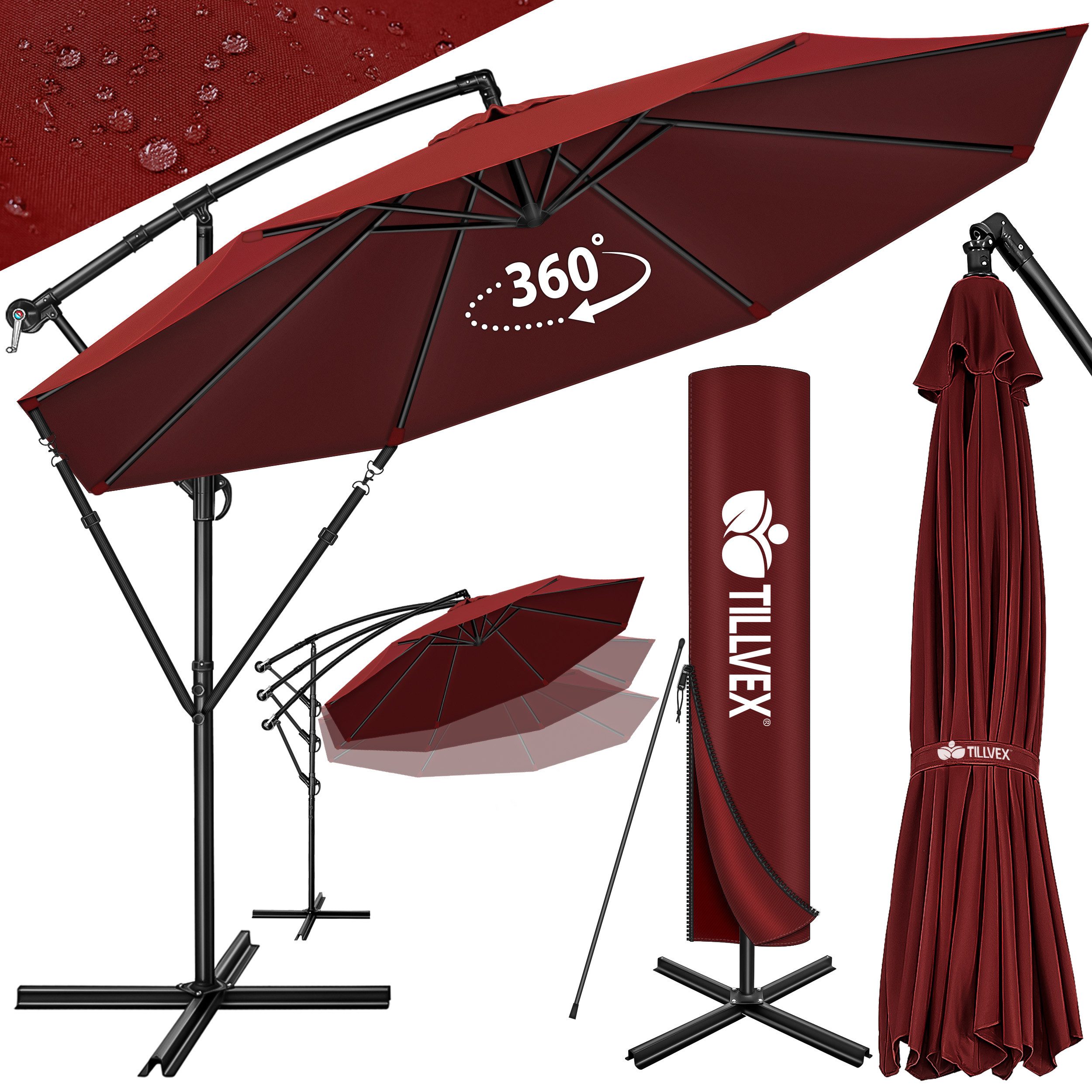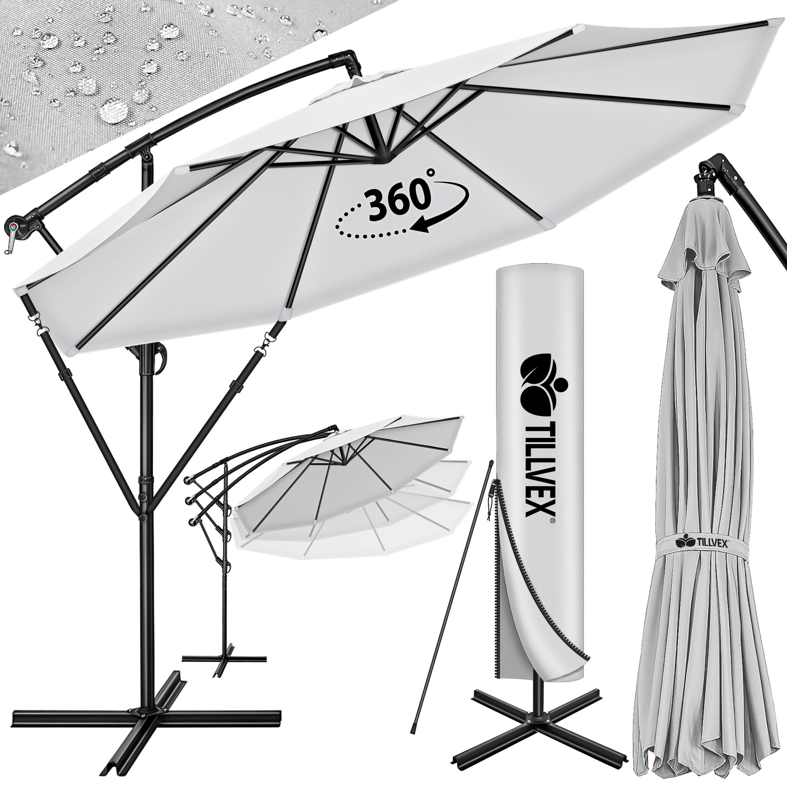 tillvex Sonnenschirm Ø 300 cm mit Kurbel | Ampelschirm inkl Ständer | Gartenschirm UV-Schutz Aluminium | Kurbelschirm Marktschirm wasserdicht