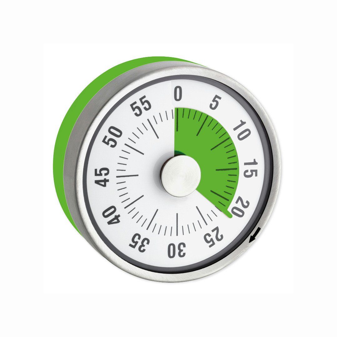 Diese rückwärts laufende Uhr zeigt Ihnen auf die Minute, wie viel Zeit Ihnen bis Erledigung Ihrer Arbeit verbleibt. Sie ist handlich und funktioniert ohne Batterien. Die farbige Zeitscheibe wird durch Drehen des vorderen Gehäuserandes eingestellt. Auf der Rückseite befindet sich zudem ein Magnet, mit dem die Uhr z.B. an Metallflächen gut sichtbar angebracht werden kann.