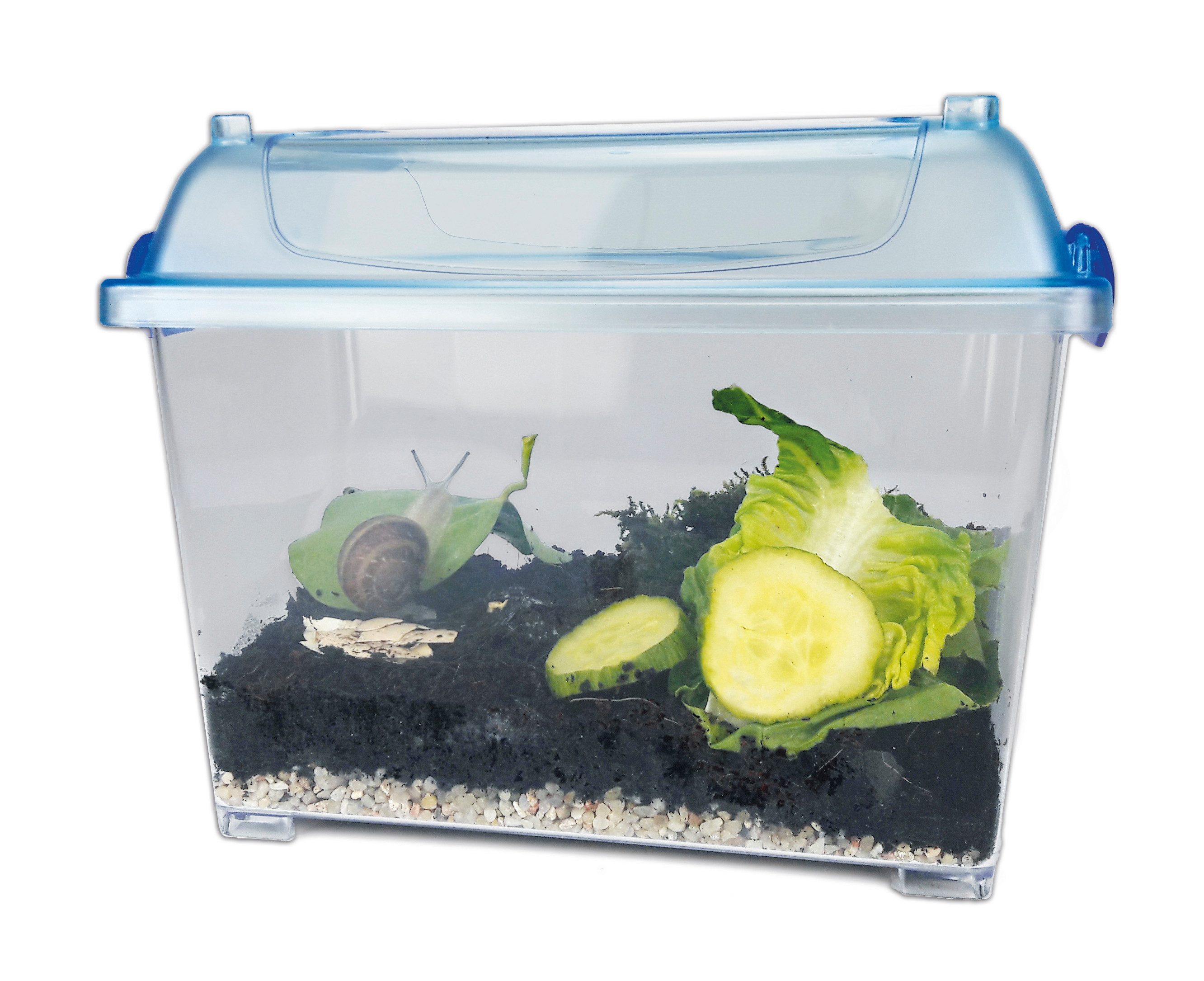 Die Schnecken überleben ca. 2-3 Monate in dem Beobachtungs-Vivarium. Im Deckel sind Lüftungsschlitze angebracht um eine ausreichende Luftzufuhr zur gewährleisten. Mit der im Lieferumfang enthaltenen Sprühflasche und der Pipette werden die Tiere mit Wasser versorgt.
