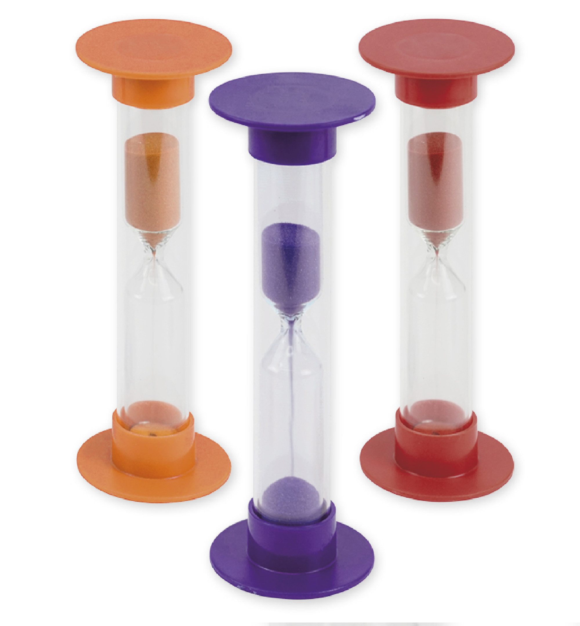 Die Sanduhren sind mit farbigem Sand in der Farbe der Endkappen befüllt. Dadurch ist der Sand besonders gut zu erkennen. Ein unverzichtbares Hilfsmittel im Unterricht und in der Freiarbeit.