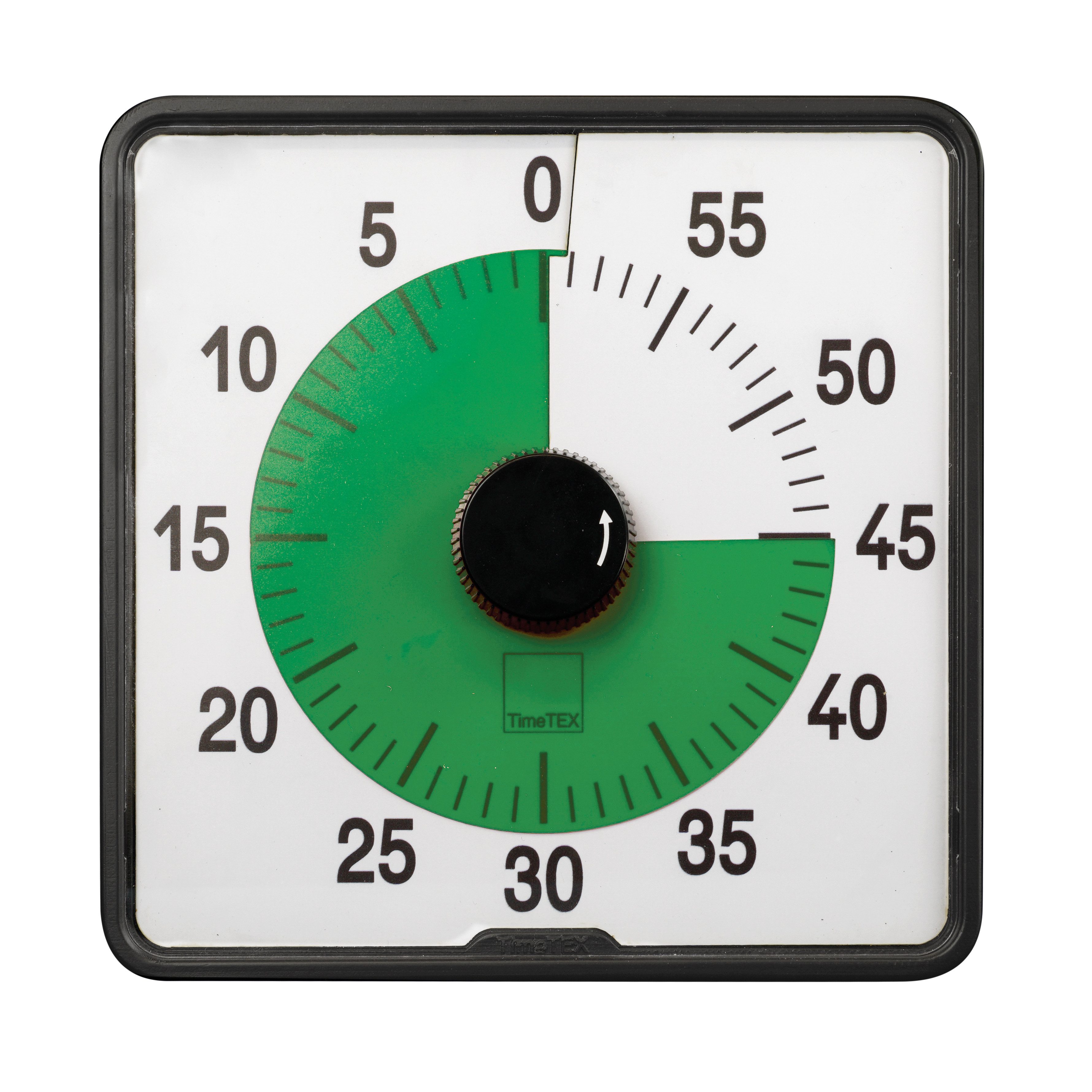 Die visuelle, analoge Darstellung der verbleibenden Zeit durch das farbige Feld vermittelt auf einen Blick die Zeit-Information, ohne dass die Konzentration von der eigentlichen Aufgabe abgelenkt wird.