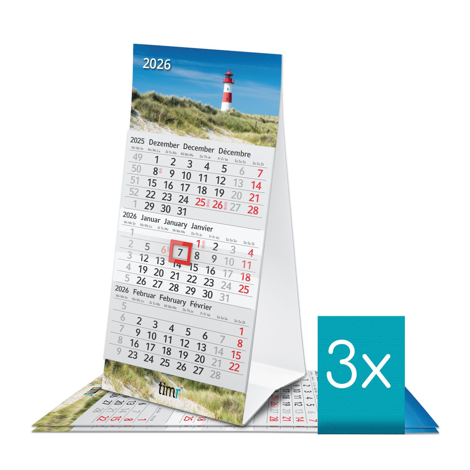 Timr Tischkalender Tischkalender 2026 Leuchtturm 3 Stück I tr372