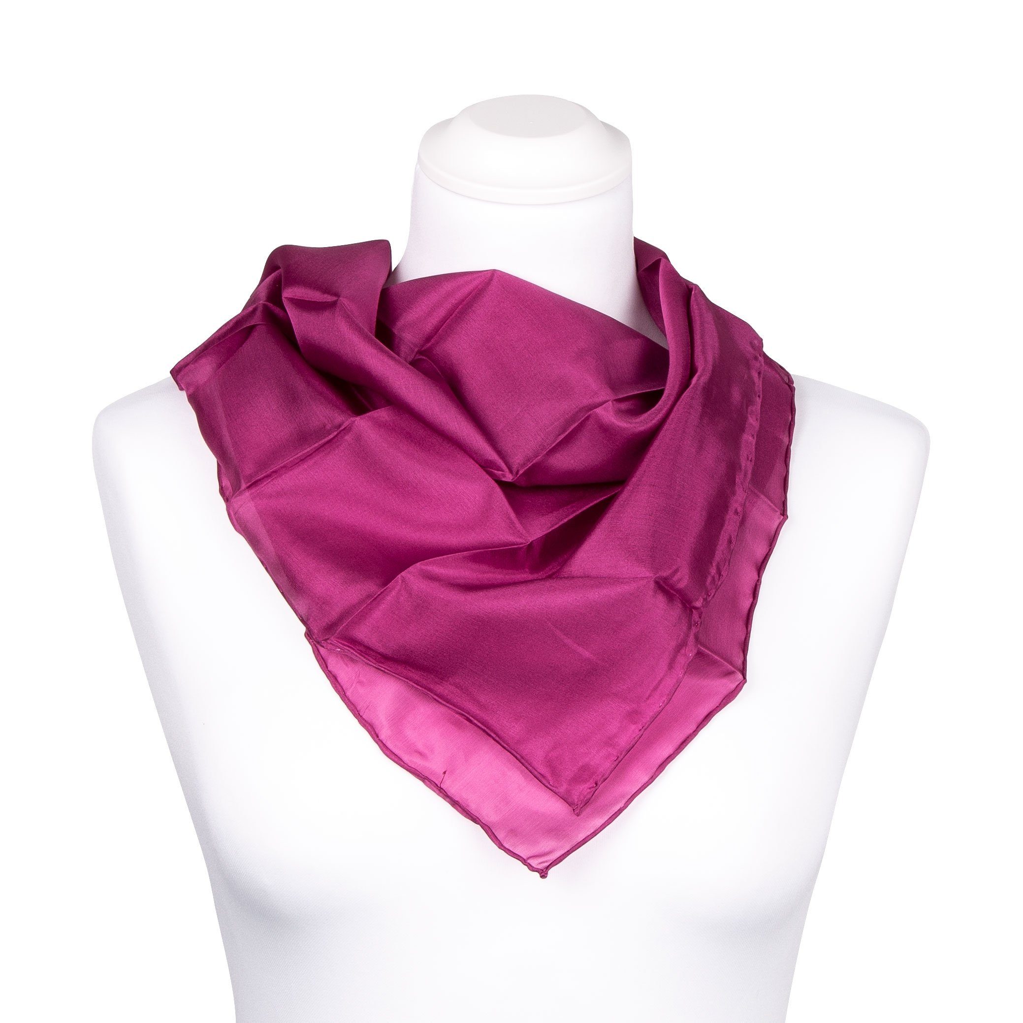 Das Nickituch Purpur besteht zu 100 % aus reiner Seide Pongé 05. Das quadratische Nickituch in der Farbe Purpur misst ca. 55x55 cm und ist das ideale Accessoire für verschiedene Anlässe. Sei es für das Business-Outfit oder den lässigeren Freizeit-Look. Tragen Sie das Nickituch nicht nur als Halstuch, sonder auch modern als Kopftuch, Haarband oder als schickes Tuch um die Handtasche gewickelt. Die Ränder des Seidentuches wurden sorgfältig von Hand umgenäht (handrolliert).