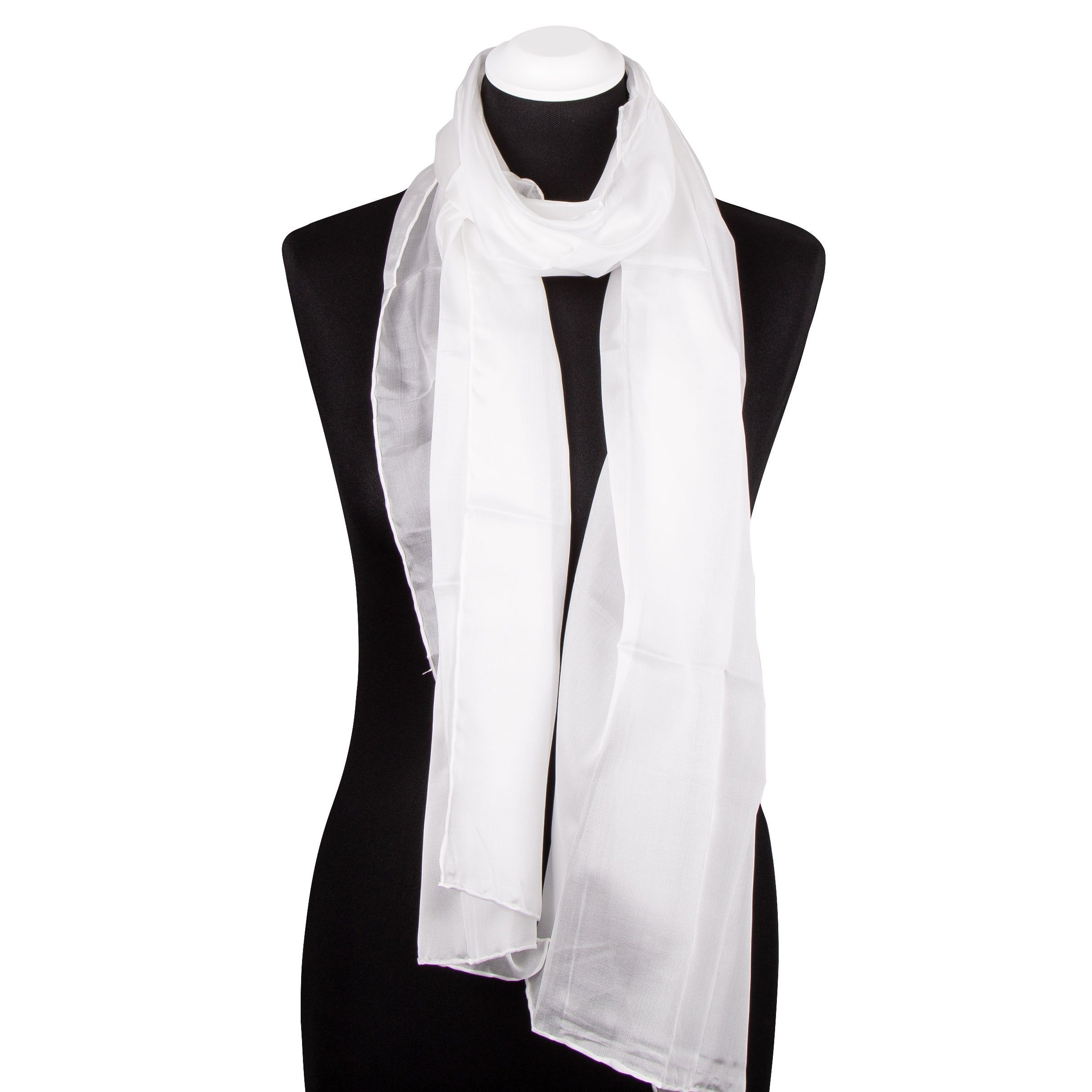 Ein Seidenschal in Weiß ist das perfekte Accessoire das gesamte Jahr über. Im Winter wärmt die Seide den Körper angenehm und im Sommer an heißen Tagen kühlt die Seide. Der weiße Schal ist bestens geeignet für Ihre Abendgarderobe und wird Ihrem Outfit das glamouröse Etwas bieten. Doch kann der Schal auch zu anderen Anlässen als modernes Accessoire getragen werden. Der Seidenschal in Naturweiß ist aus 100 % echter Seide Pongé 05 hergestellt und ist in der Размер 180x50 cm erhältlich. Die Seidenwebart Pongé verleiht Ihrem Look ein unwiderstehliches Strahlen und garantiert ein besonders angenehmes Tragegefühl.