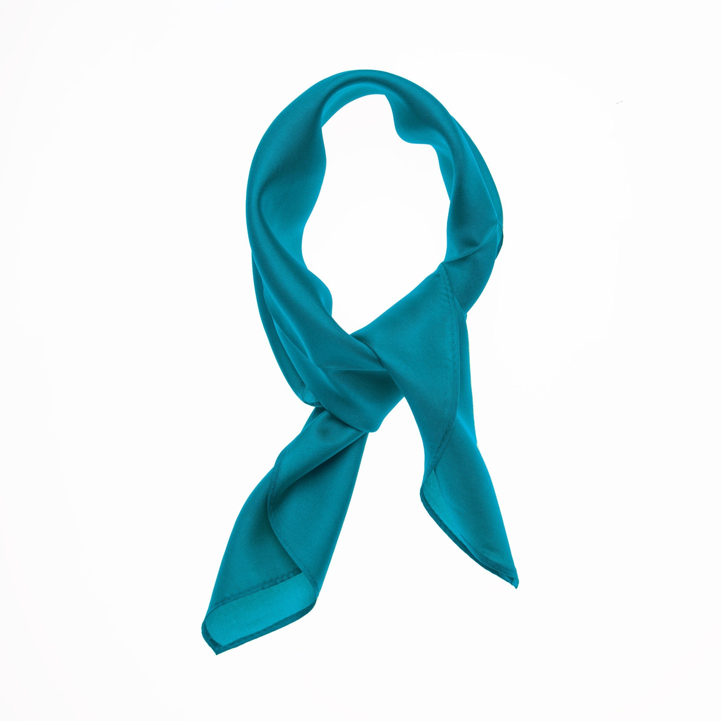 Hochwertige Seidenschals und Seidentücher sind ein gern getragenes Accessoire in der Modewelt. Seidentücher dürfen als attraktives Accessoire in keinem Kleiderschrank fehlen. Das quadratische Nickituch misst ca. 53x53 cm und lässt sich ideal zu T-Shirts, Pullovern und Blusen kombinieren. Das blaugrüne Seidentuch zaubert aus Ihrem Outfit einen klaren und einfachen Look. Die Vielseitigkeit macht dieses Kleidungsstück so beliebt.