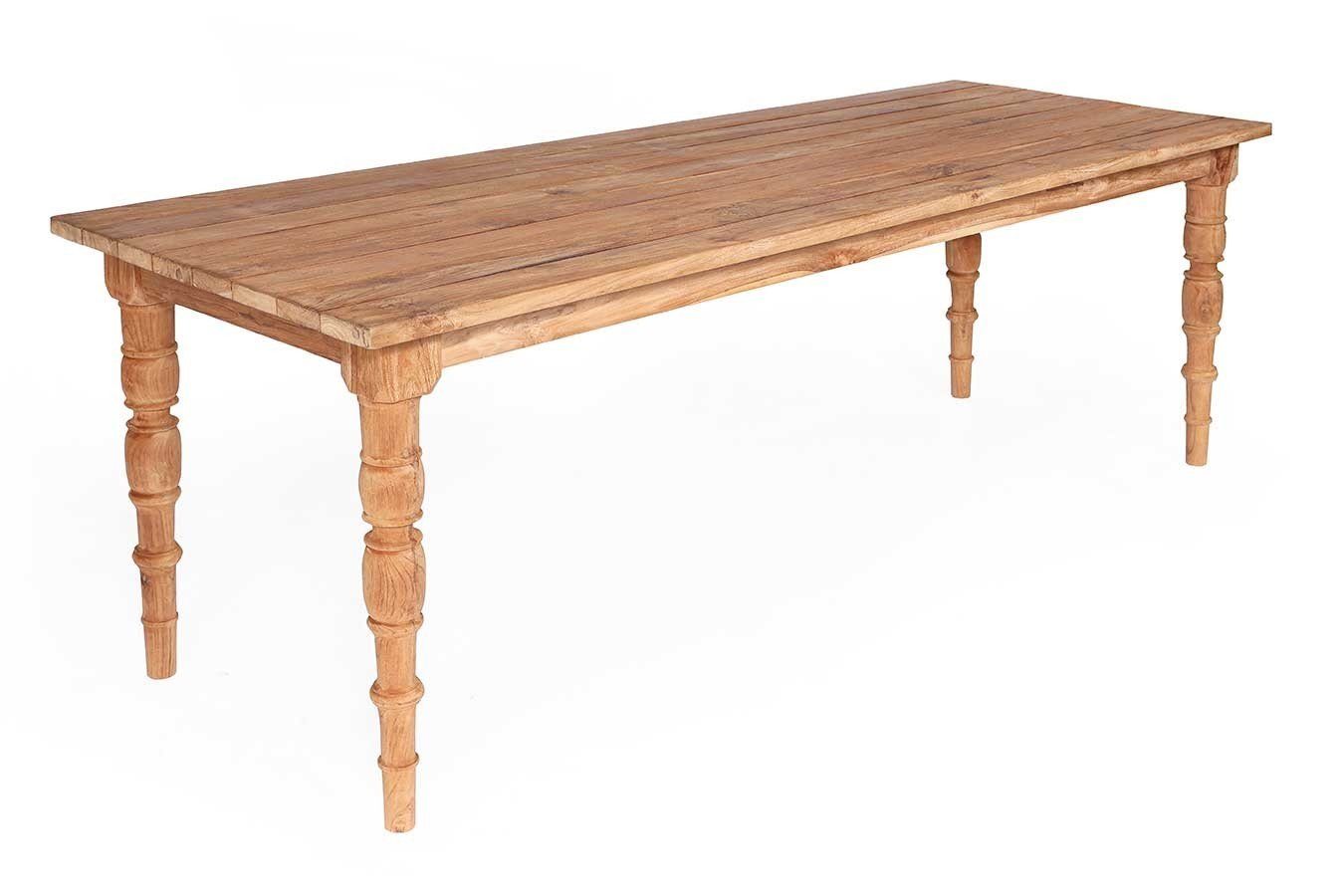 Um die Freude des Frühlingseinbruchs zu feiern, können Sie einen massiven Holztisch, wie etwa Brasserie, problemlos auf Ihre Terasse oder eben mitten auf den Rasen stellen. Dadurch fühlen Sie sich der Natur noch verbundener. Der Teakholztisch, der aus recycelten Holzbohlen besteht und dessen Oberfläche natürlich und unbehandelt ist, sprüht förmliche Ruhe aus. Durch die Ölhaltigkeit dieses Holzes kann es unbehandelt in der Natur stehen, da sich dieses von innen heraus schützt. Durch UV-Licht verändert sich die Holzfarbe von braun in grau, was allerdings ein natürlicher Prozess dieser Holzart ist. Dieses Produkt hat die Maße Breite 220cm, Höhe 78cm und Tiefe 80cm. Es lässt sich bei leichten Verschmutzungen mit einem Staubtuch pflegen. Dennoch sollten Sie sich nicht davor verstecken, Brasserie als geeignete Speisetafel für Feste und feuchtfröhliche Feiern zu verwenden. Sowohl im Sommer als auch im Frühling ist er vielseitig einsetzbar. Mit den passenden Stühlen, wie etwa weißen Modellen, die den Landhausstil und die Rustikalität des Möbelstücks unterstreichen, können Sie nichts falsch machen. Hausaufgaben, Essen verspeisen oder aber die Seele baumeln lassen, an dem Massivholztisch, dessen unbehandelte natürliche Oberfläche deutlich spürbar ist, sollte dies nicht allzu schwer werden. Dieses Naturprodukt kann in Farbe und Maserung vom Produktbild abweichen. Dieser Artikel ist in weiteren Größen verfügbar.