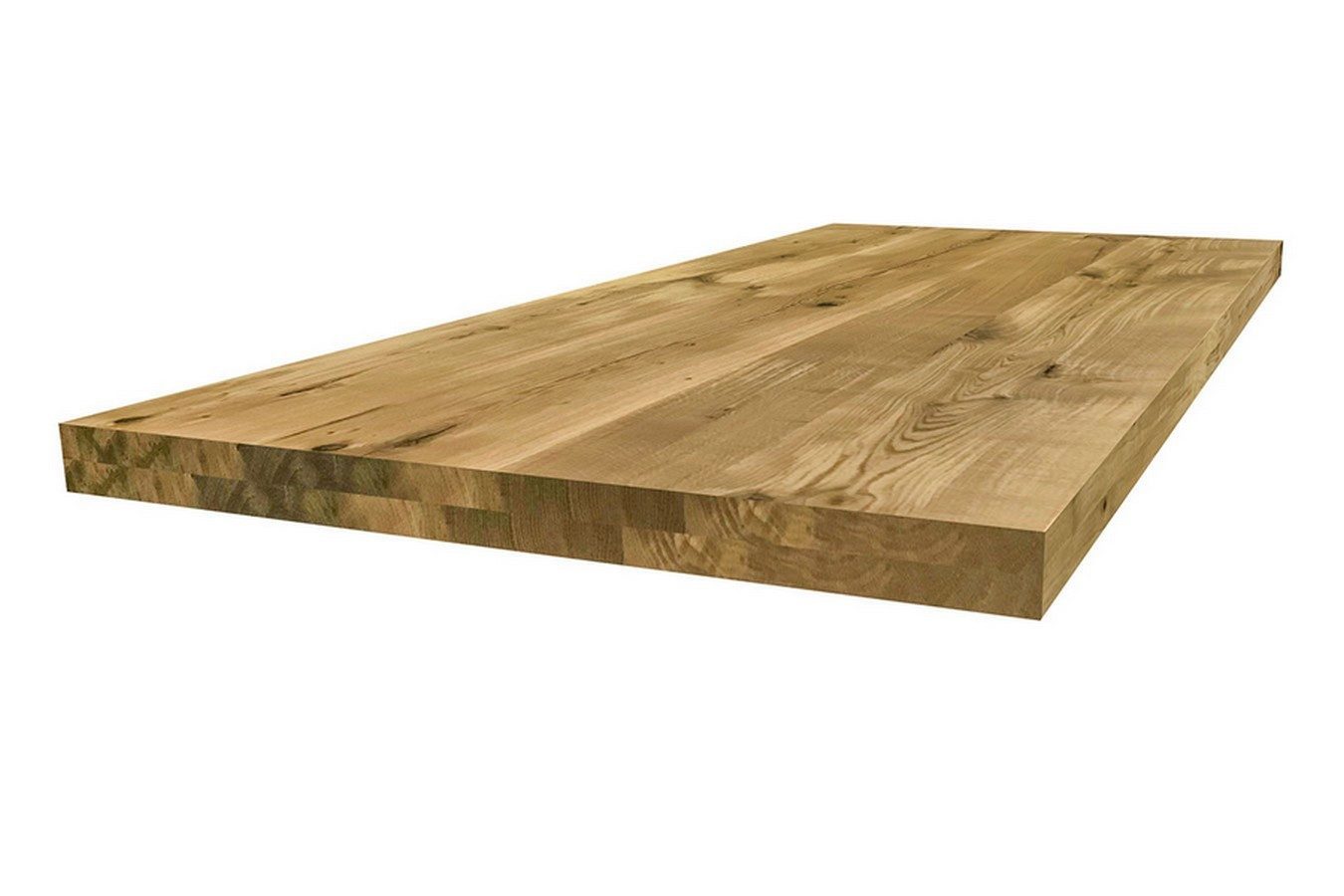 Unsere Tischplatte aus astiger Eiche hat eine Tiefe von 50cm, eine Breite von 60cm und eine Höhe von 6,5cm. Die Tischplatte hat eine organische Kante. Das Merkmal astig erhält die einzigartige Eichenplatte dadurch, dass dieses Holz von Bäumen stammt, die in der Natur an anspruchsvollen Standorten wie Waldrändern oder Geländeeinschnitten wachsen. Dadurch bekommen nicht nur sie, sondern auch unsere Massivholzmöbel aus Eichenholz ihre stark ausgeprägten Astlöcher oder Holzstrahlen. Unsere Platte hat eine Stärke von 3cm. Das hier gezeigte Modell ist in seiner Naturfarbe mit unbehandelter Oberfläche dargestellt. Diese Massivholztischplatte besteht aus drei Holzplanken, die zusammengepresst sind, um eine vielfältige Maserung der Eiche hervorzuheben. Die natürlich-warme Farbgebung von grau-gelb bis gelbbraun ist hier sichtbar vertreten. Durch ihre natürliche Farbgebung sehen Möbel und vor allem unsere Tischplatten der Eiche in rustikalen und landhausähnlichen Wohnungen besonders schön aus und können auch in der Gastronomie verwendet werden. Ländliche Luft und der Drang, wieder in die Natur hinaus zu gehen, werden durch die Oberfläche des Holzes gefördert, denn Natur möchte immer wieder neu entdeckt und in ihren unterschiedlichen Farben gesehen werden. Mit unserem Konfigurator können Sie die Размер Ihrer Tischplatte selbst bestimmen. Der Preis wird automatisch berechnet. Diese Tischplatte kann nicht nur in ihrer natürlichen Farbgebung als perfektes Massivholzmöbelstück in Ihrem Haus, Garten oder in der Gastronomie dienen, sondern kann von Ihnen ebenfalls individuell ausgewählt werden. Was gibt es alles? Sie können die Oberflächenstruktur auswählen, wodurch Sie entweder eine glatte Oberfläche erhalten oder eine, bei der man beim Drübergehen mit dem Finger die Maserung deutlich spüren kann. Natürlich sind auch diverse Oberflächenbehandlungen möglich, was bedeutet, dass Sie Ihre Tischplatte unbeha