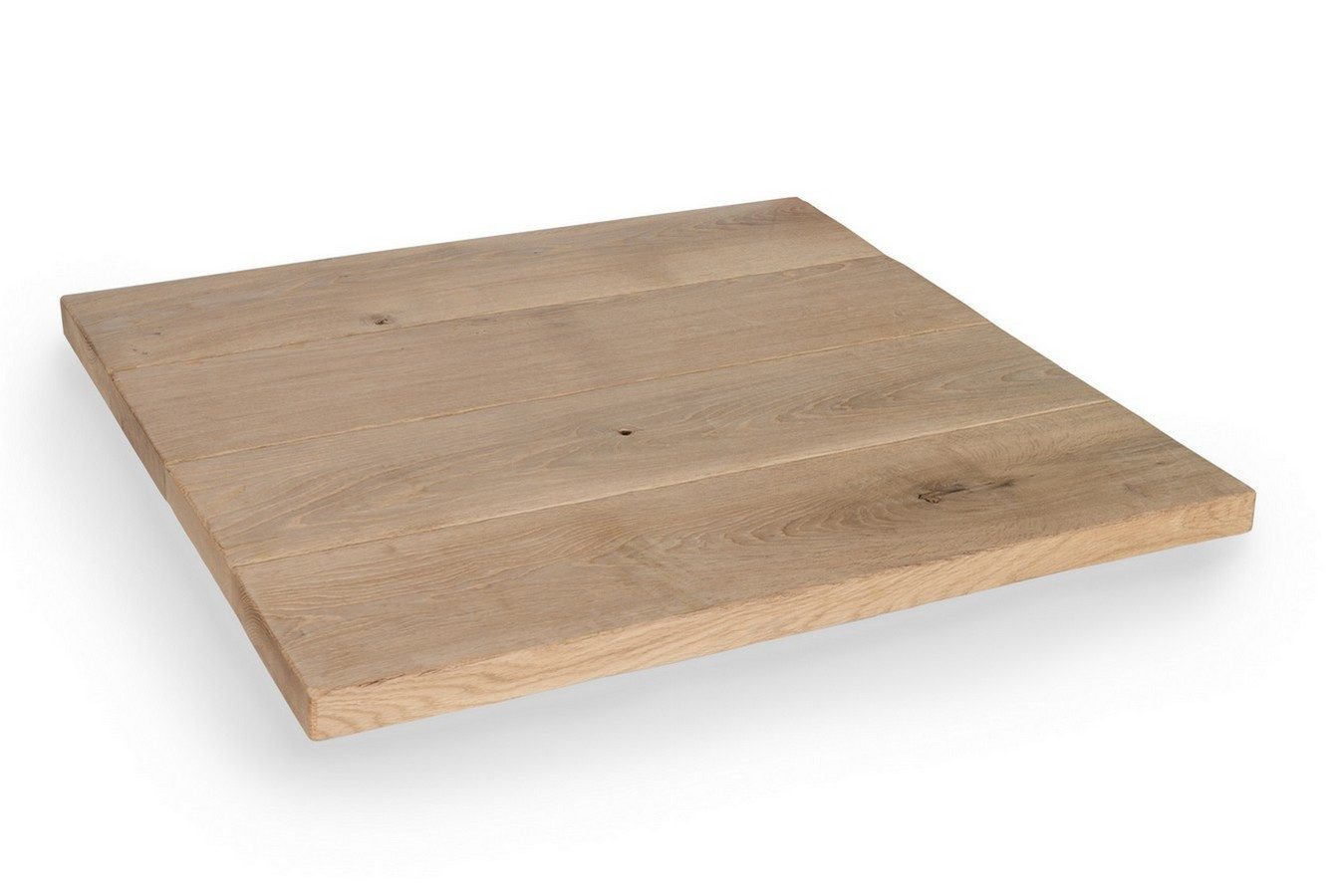 Die Eiche, die am häufigsten vorkommende Baum- & Holzart in Deutschland, ist auch bei uns als Produkt vertreten. Dieses Holzprodukt ist sehr hart, vor allem widerstandsfähig und aus fast all unseren Wohnungen nicht mehr weg zu denken, da seine natürliche Farbe mit gleichmäßiger Maserung im Hausbau sehr begehrt ist, sei es als Verwendung für Möbel, Treppen oder auch Bodenbeläge oder Tische und Stühle so wie unsere Platten aus Eichenholz. Unsere kleine Tischplatte hat die Maße Breite 50 cm, Höhe 4 cm, Tiefe 50 cm und ist somit ein quadratisches Holzprodukt, das als Tischplatte aus Vollholz entweder im privaten Gebrauch oder auch im Bistro verwendet wird. Besonders gut macht es sich in Räumen im rustikalen Landhausstil oder Einrichtungen mit modernen Charme. Eiche ist ein qualitativ hochwertiges Holz, da es sich kaum verzieht und resistent gegen Umwelteinflüsse ist. Unser Echtholzprodukt hat seine natürliche Farbe beibehalten dürfen. Lediglich die Oberfläche wurde gebürstet, um die natürliche Maserung des Holzes zu betonen.
